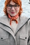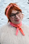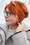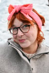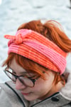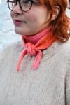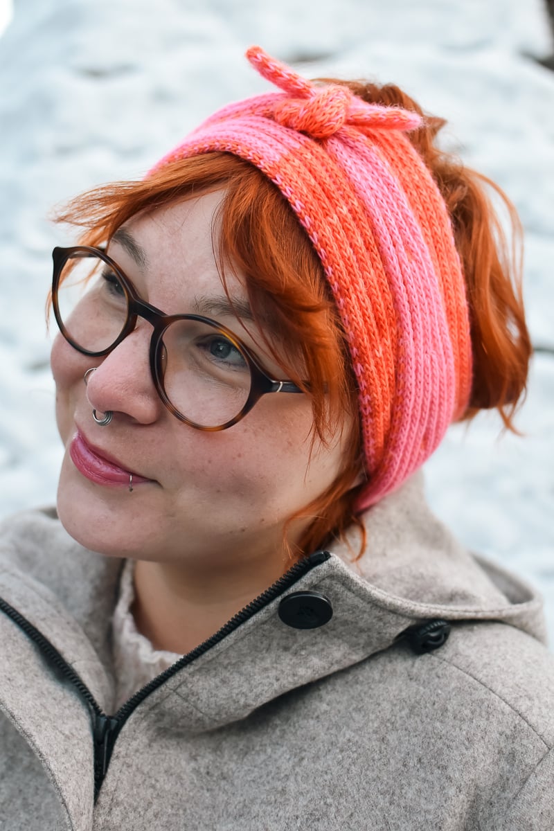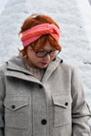 The small version can be worn as a mini scarf around the neck or as a tied headband. The large version can be wrapped around the neck twice for an extra layer of warmth, or as a double-wrapped headband.