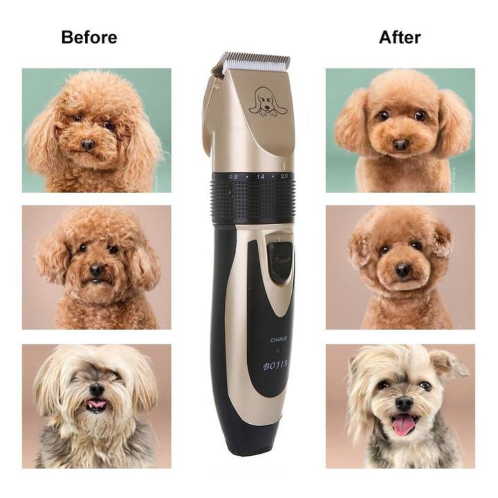 - Cordless design for easy use. The pet grooming kit is equipped with a charger. Charging for five hours, it can sustain uses of 70 minutes.