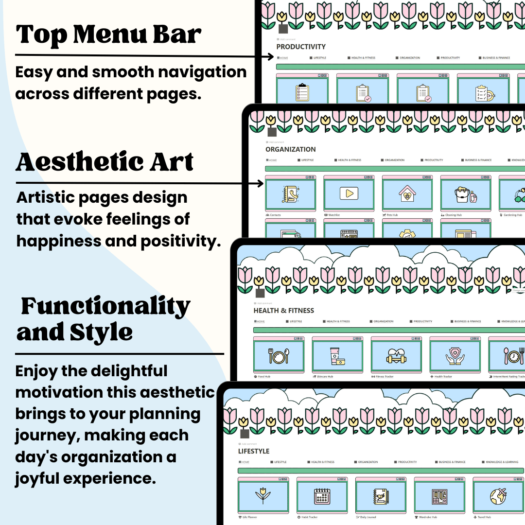 Ultimate All in One Pastel Tulips Theme Aesthetic Notion Template