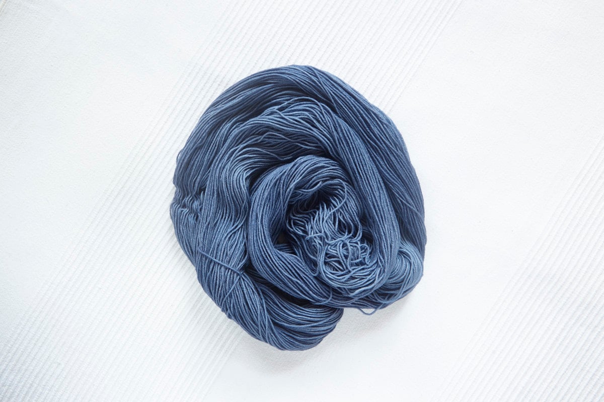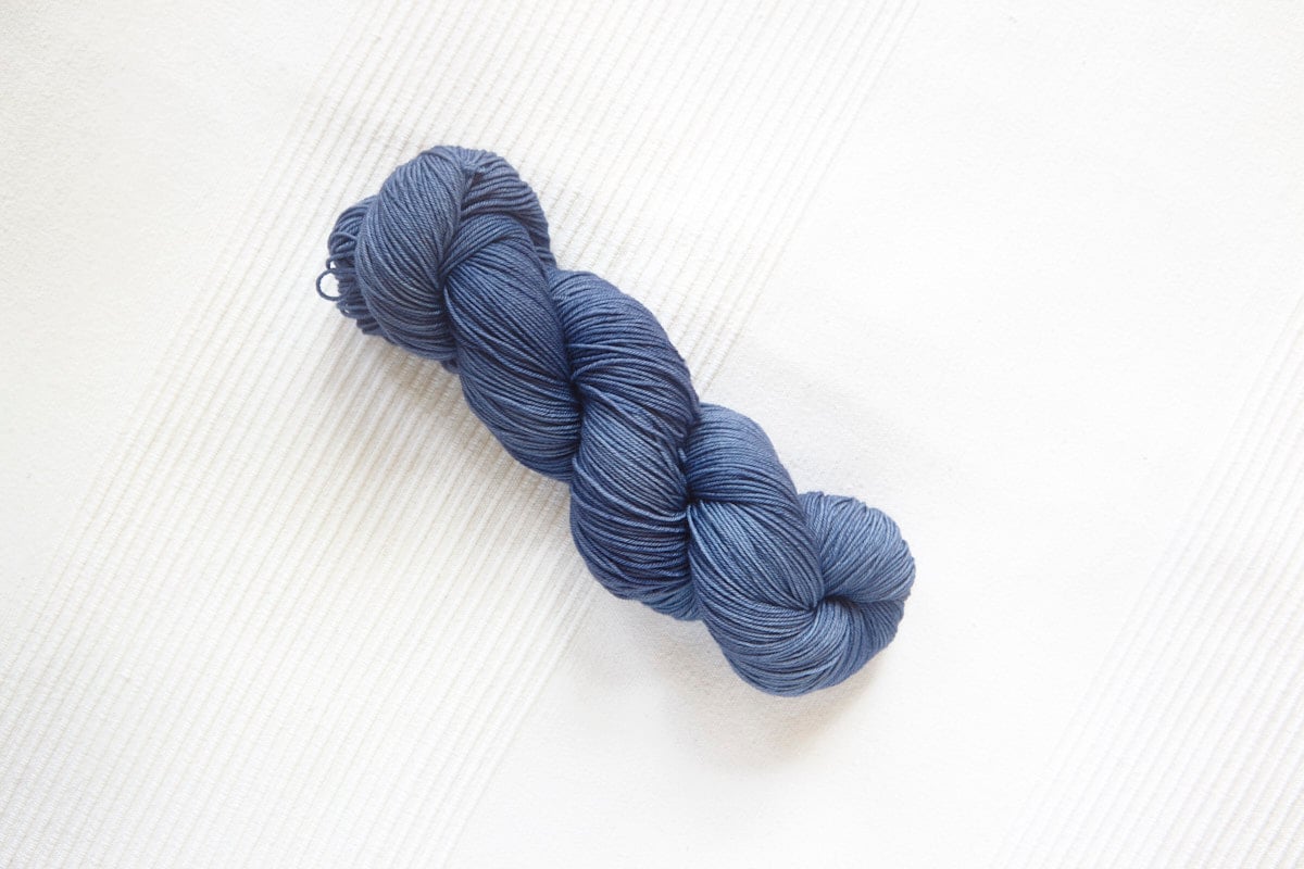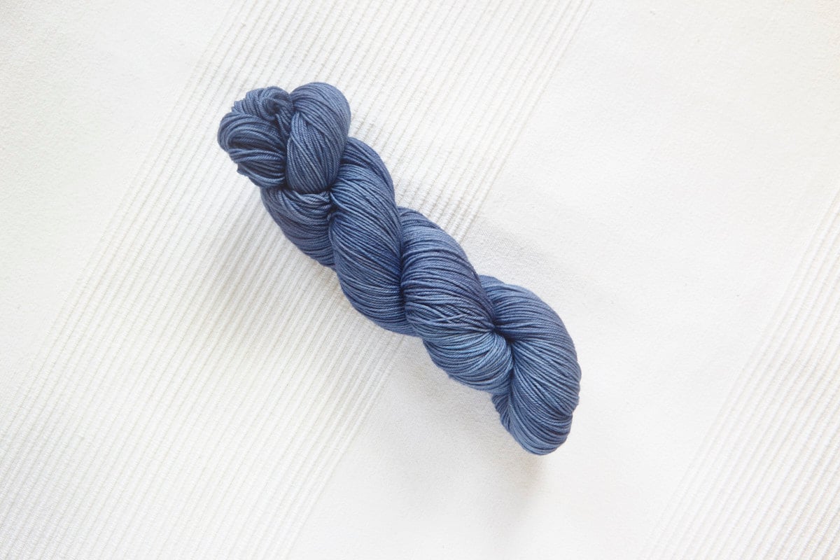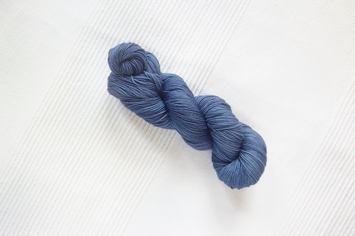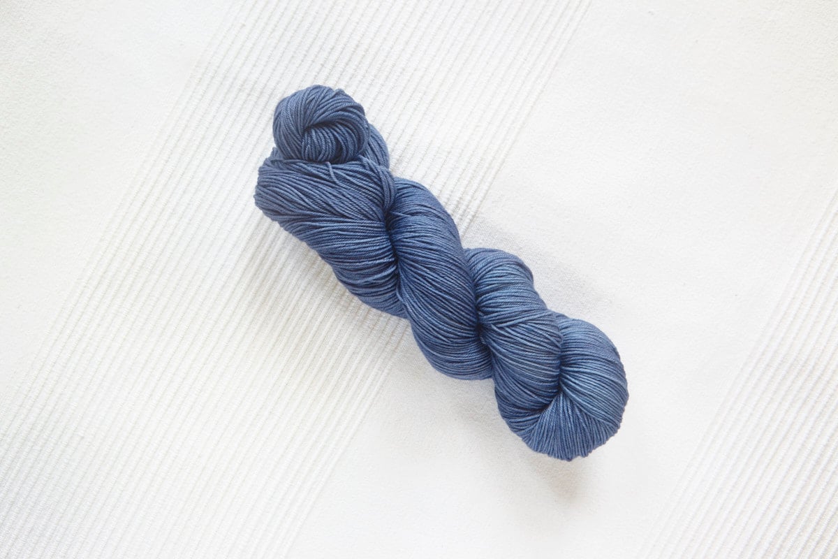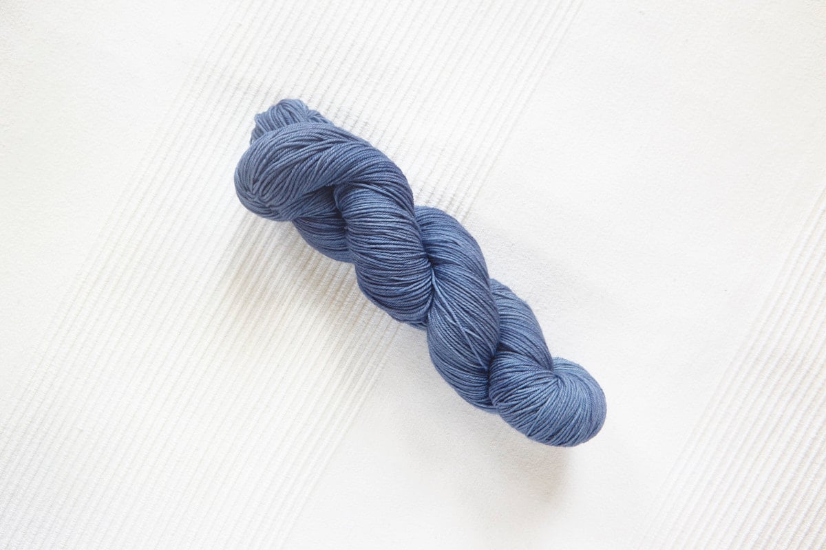 Swallow (Fingering) in colorway: Stormy Sea. Semi-solid. Medium steel blue, almost like light denim