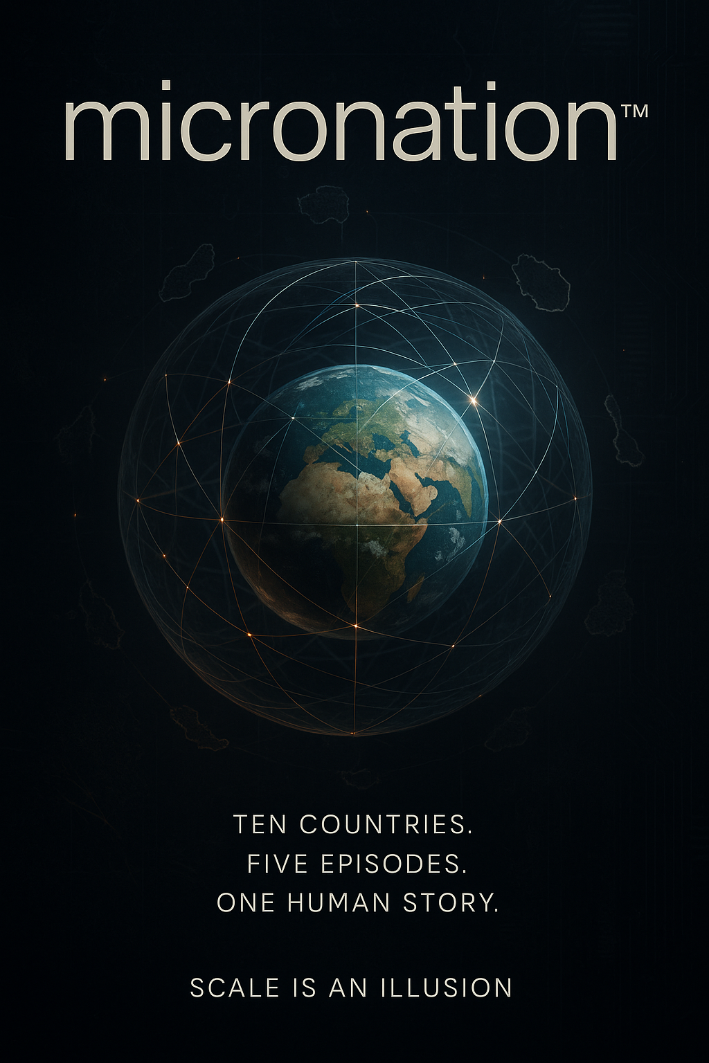 Scale is an illusion; sovereignty is a ritual of memory, code, and will. A five-part docu-hybrid braiding History/Now/Future across ten microstates to model how nations dissolve, reinvent, or upload themselves—and what that markets, moralizes, and monetizes in us.