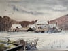 This pretty English scene of High Mill in Farnham, Surrey is a line and wash adaption of the original painted by the influential artist Rowland Hilder (1905-1993). Hilder’s works were often characterised by levels of high contrast, deep (black) shadows, and dramatic skies. He frequently depicted late autumn and winter scenes, capturing a sense of quiet, chill, and stillness—sometimes with long shadows or low sunlight.