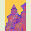 Bell Tower Printable Wall Art, Village Church Tower, Printable Downloadable Art, Surrealistic Art, High Vibratory Colors, Mood Colors, Religious Art Print