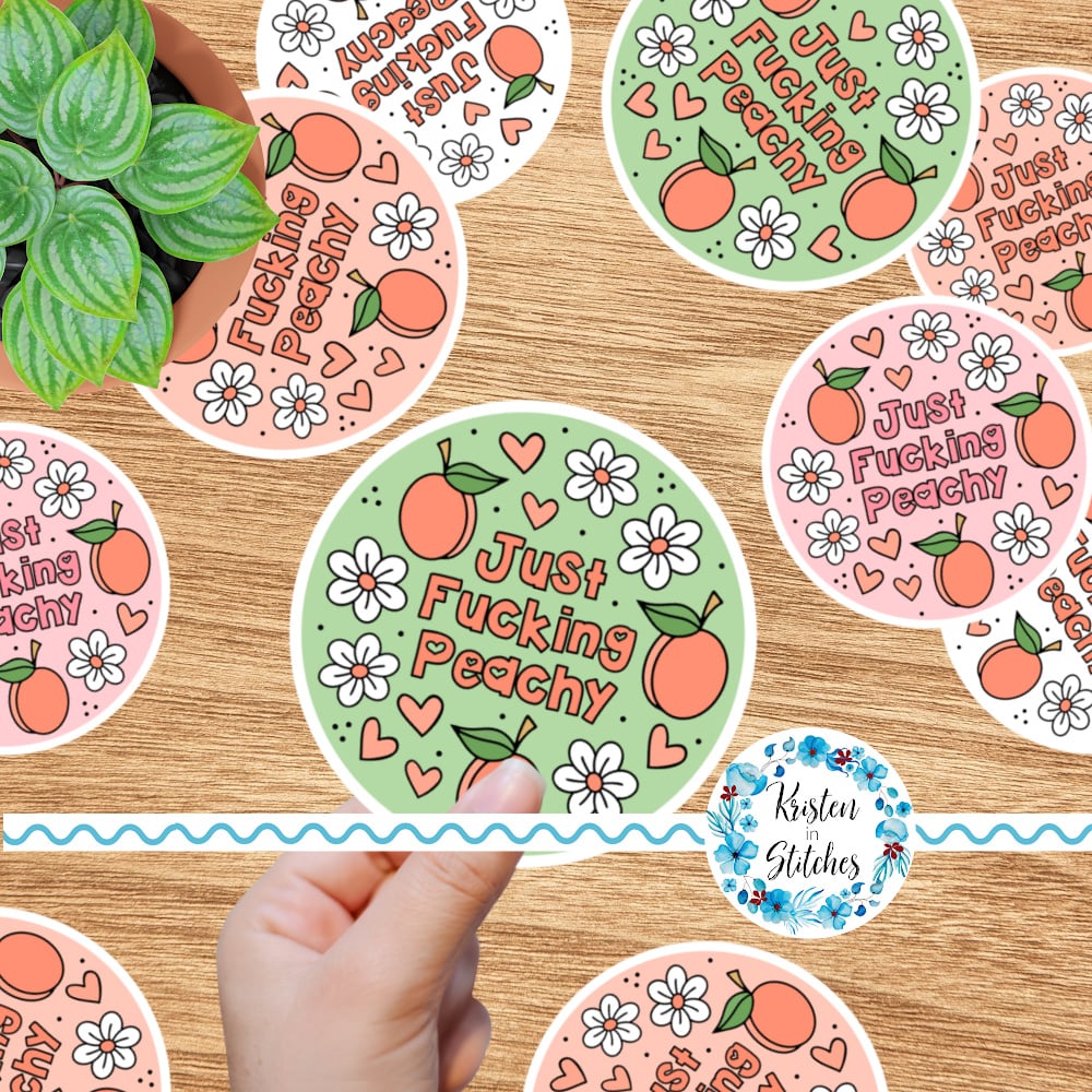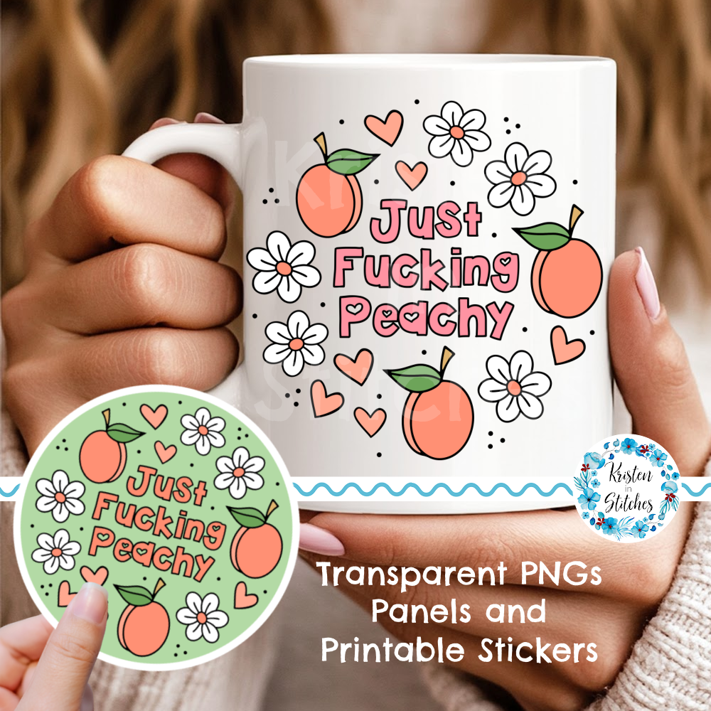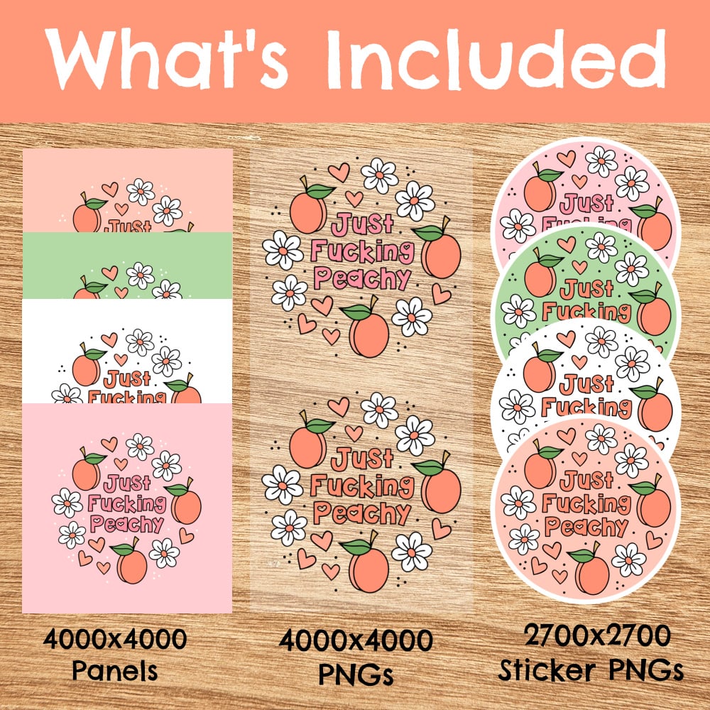 Just Fucking Peachy floral graphics. Use for stickers, badge reels, jar and candle labels, uv dtf transfers, shirts, digital journals and so much more!