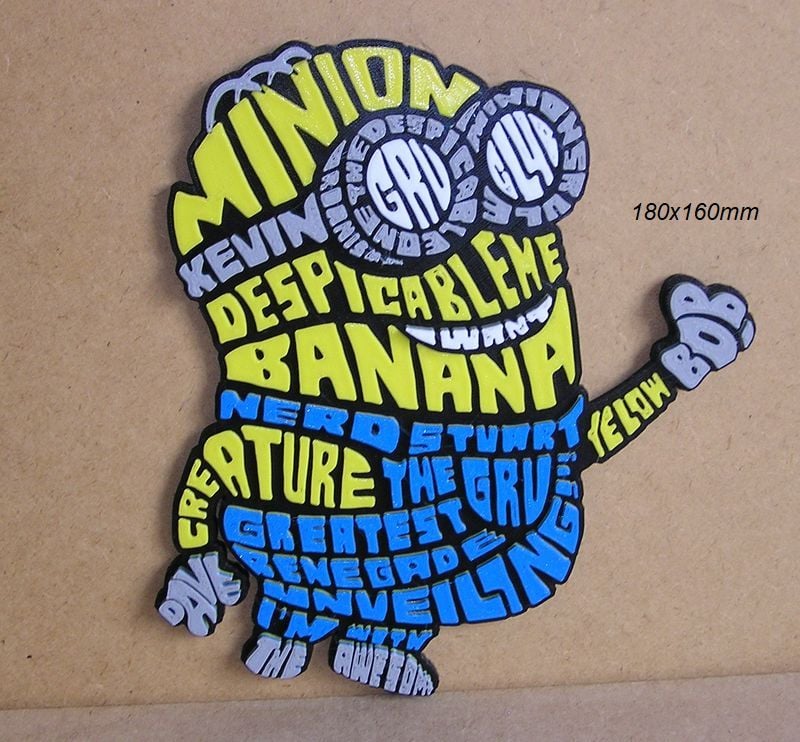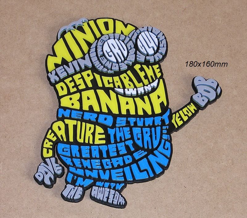 Poster sign logo, Minion, these STL and Gcode files have been created to be printed in various colors with any FDM type printer. The color changes have been made with the Elegoo Neptune 3 Pro printer, but they can be printed on any printer.