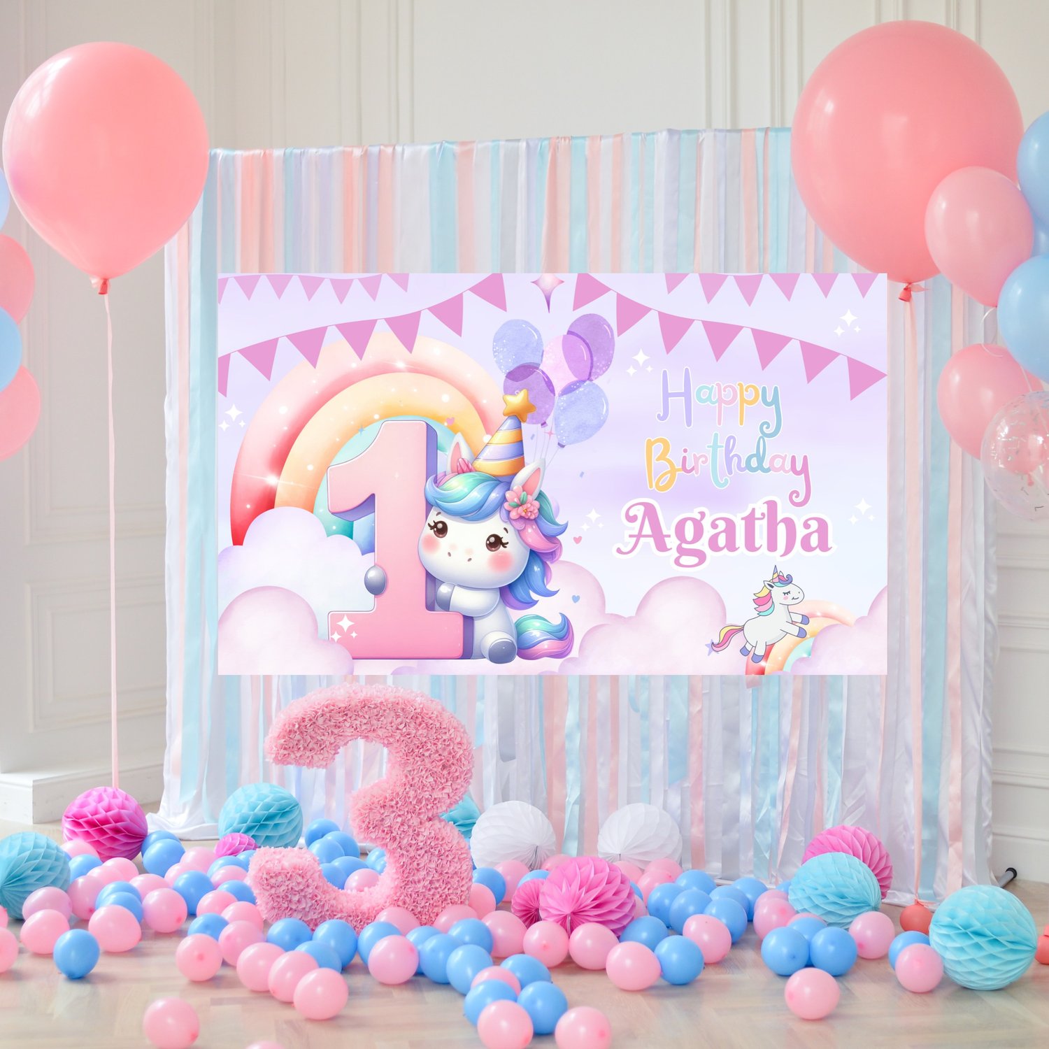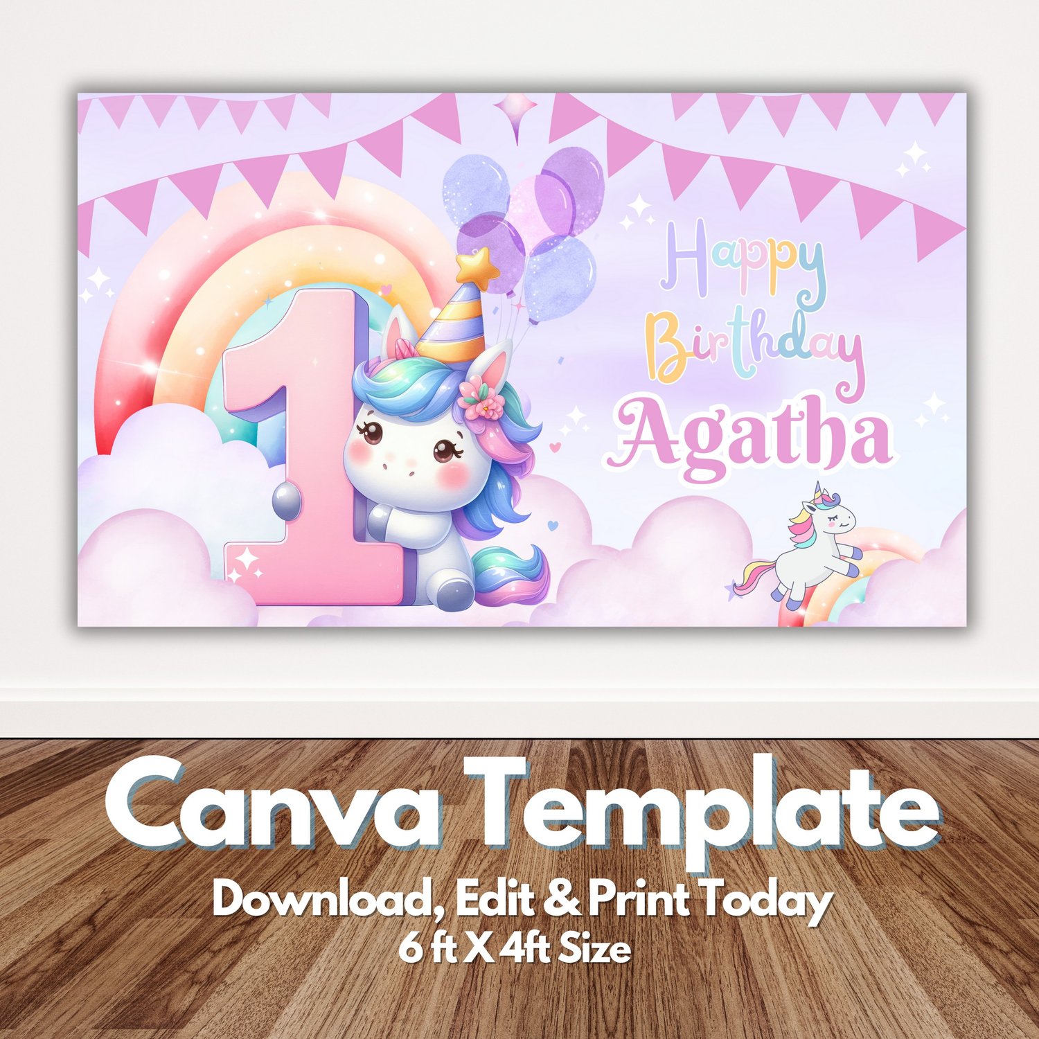 Unicorn Birthday Backdrop Template