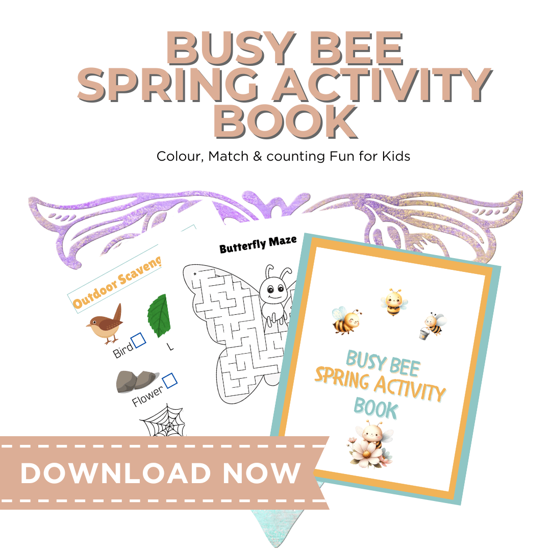 Busy Bee Spring Activity Book is a fun, printable spring-themed activity book for children ages 3–6, designed to help little learners build coordination, number skills, and early writing confidence — all while having fun with a parent by their side.