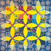 - Colorbright Petals -- using the Flowering Snowball block, this quilt measures 47" square. I designed a unique border to finish off the edges.