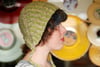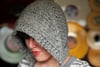This bonnet/hood style hat can be made in any gauge, and custom sized to any head, though the specifics of its shape may differ with yarn weight. A bulkier yarn will make for more of the hood style, while sport-fingering weight is best for a smaller, fitted hat, or a baby-sized bonnet.
