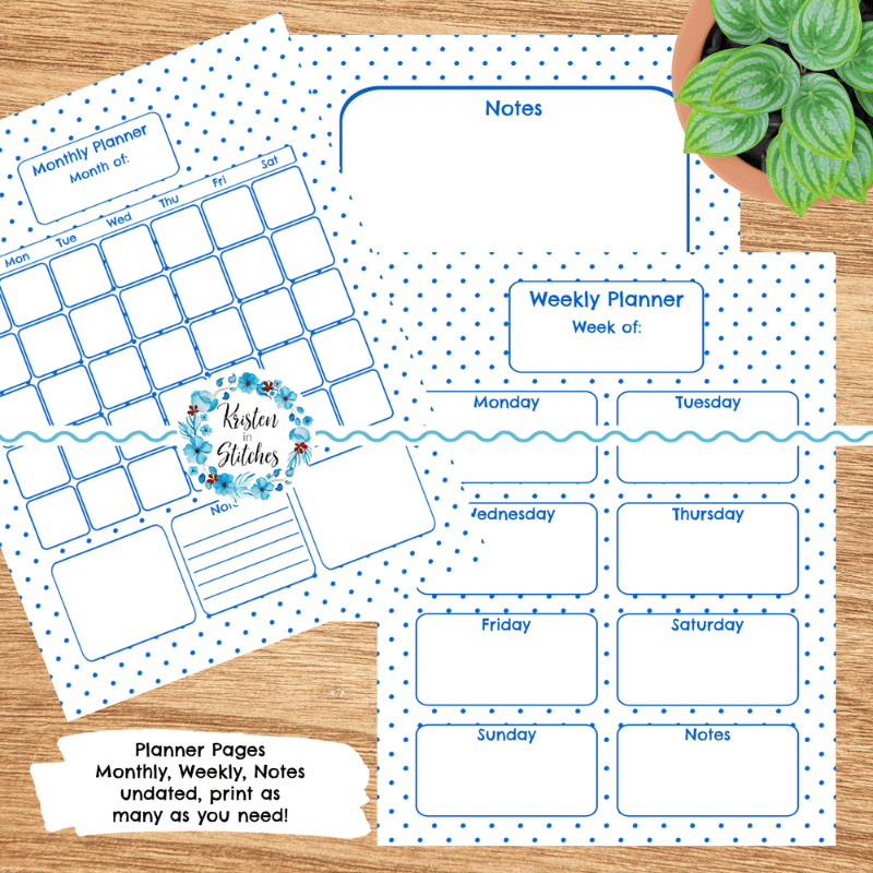 ✔ 3 Planner Pages – including weekly and daily and notes formats, in primary design and coordinate