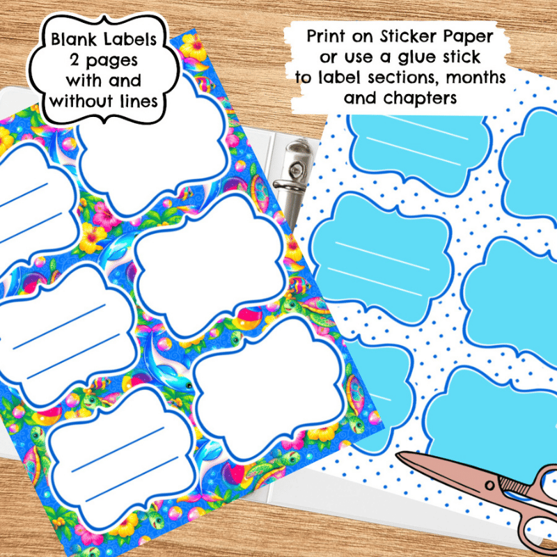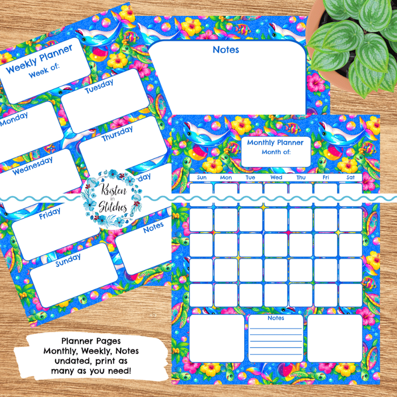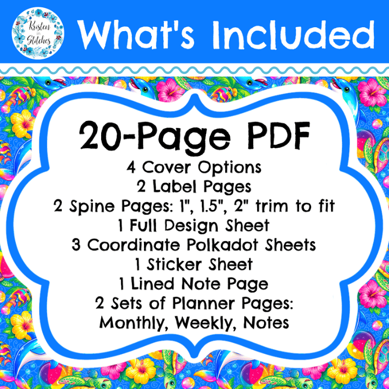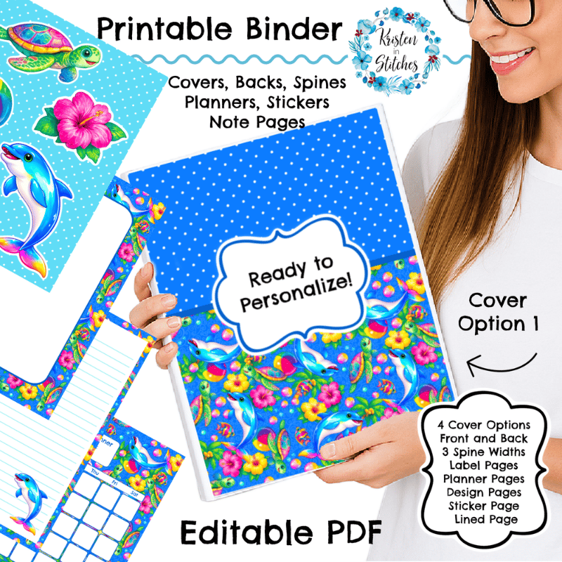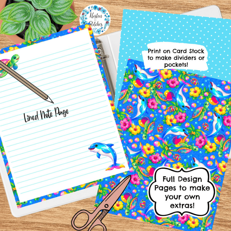 Printable Binder 20 Page Planner Set Covers Stickers 8.5x11 PDF, Tropical Sea Life Dolphins