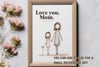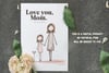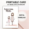 Send your heartfelt wishes with this digital Mothers Day or Birthday Greeting Card for Mom with a cute drawing of a mom and daughter on it. Download this printable PDF card for a simple, print your own gift solution. This minimal and illustrated e-Card offers the best in wishful congratulations. Send love effortlessly with this beautifully designed postcard – the ideal last-minute gift for the best mom.