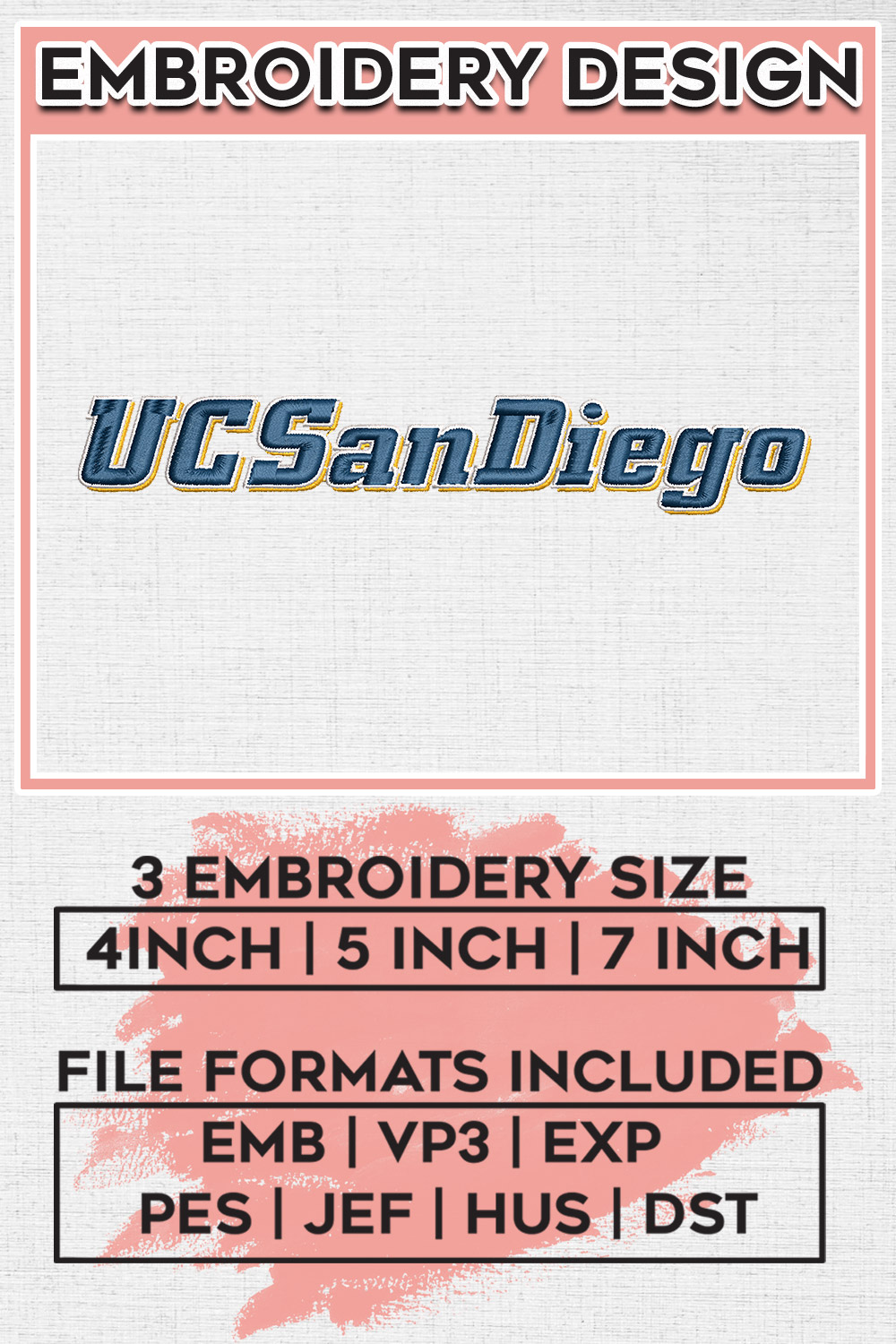 UC San Diego Wordmark Logo Embroidery Files, NCAA UC San Diego Tritons Football Team Embroidery, NCAA Teams, Game Days, Machine embroidery designs, Digital Download