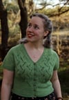 Spring quartet is a light cardigan worked seamlessly top-down. The cardigan features a delicate lace pattern, a V-neck and raglan sleeves. The body is worked flat and the cardigan has a cropped hem and waist shaping to make it an ideal companion for high waist dresses. The pattern includes instructions for both short and long sleeves.