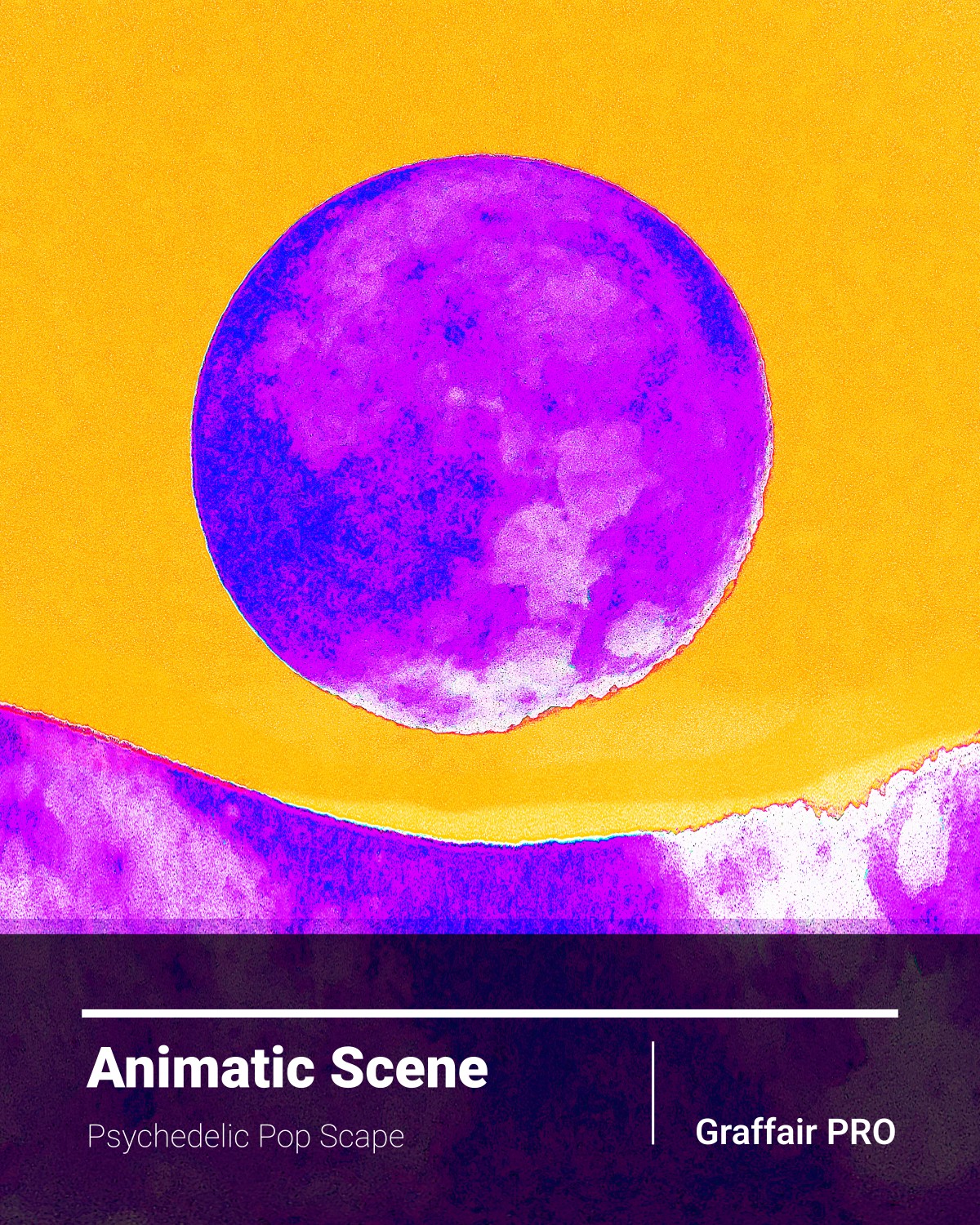 Animatic Scene: A psychedelic pop landscape scenery evokes an anime sense of illustration. Ideal for covers.
