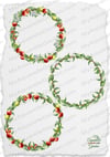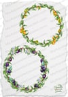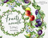 Fruits wreaths with lemons, apples, pears, plums, prunes, leaves and flowers