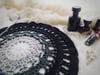 A perfectly round mandala which incorporates the various components of a wheel! This pattern uses 4 colors , black , dark grey, light grey and white. The total yardage does not exceed 110 - 120 yds.