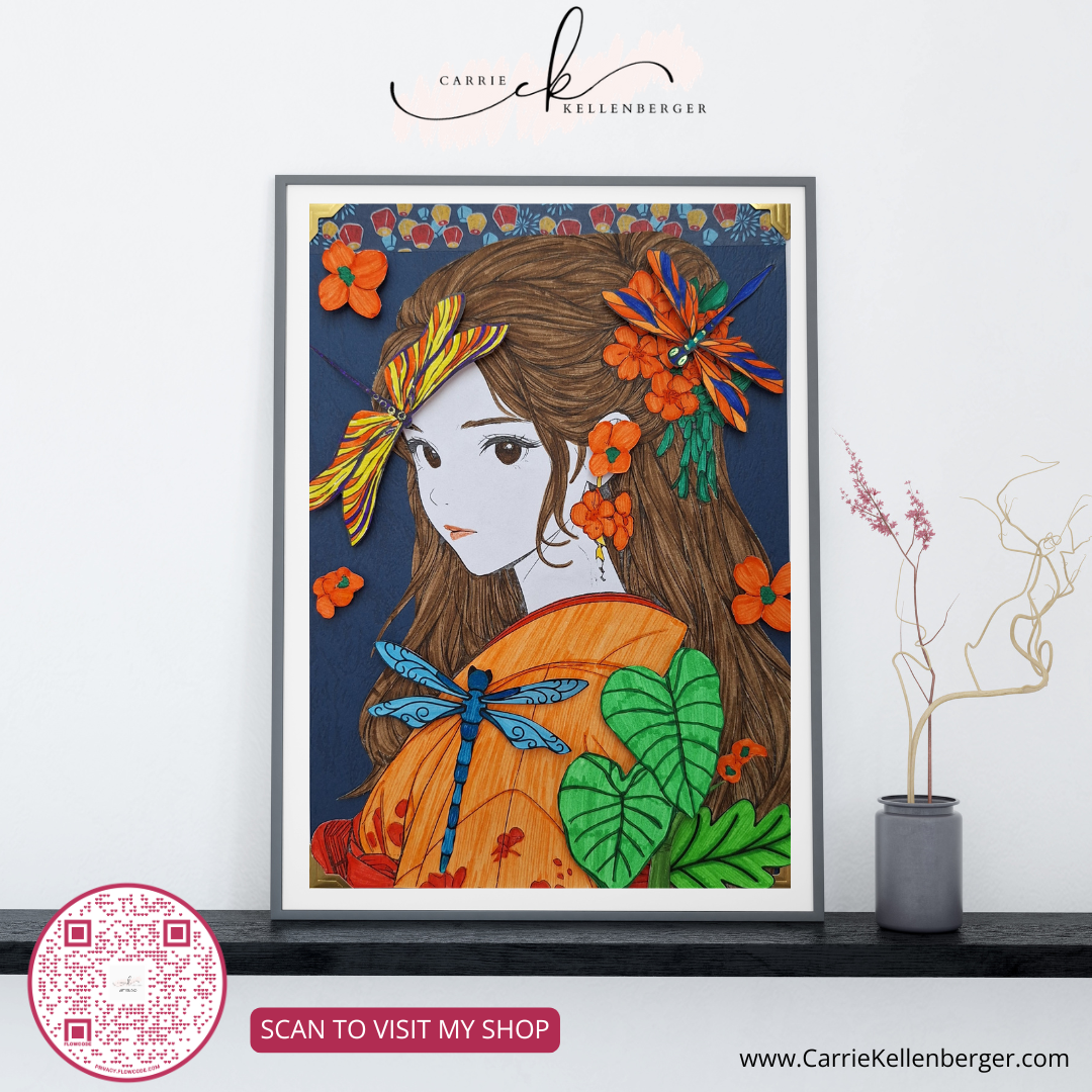My paper cutting technique adds an extra 3D dimension of beauty and intricacy to each design, making my collages a delightful keepsake. They’re meant to brighten any space: an office cubby, a senior’s bedside, a child’s room, a sunny kitchen, or anywhere your heart desires.