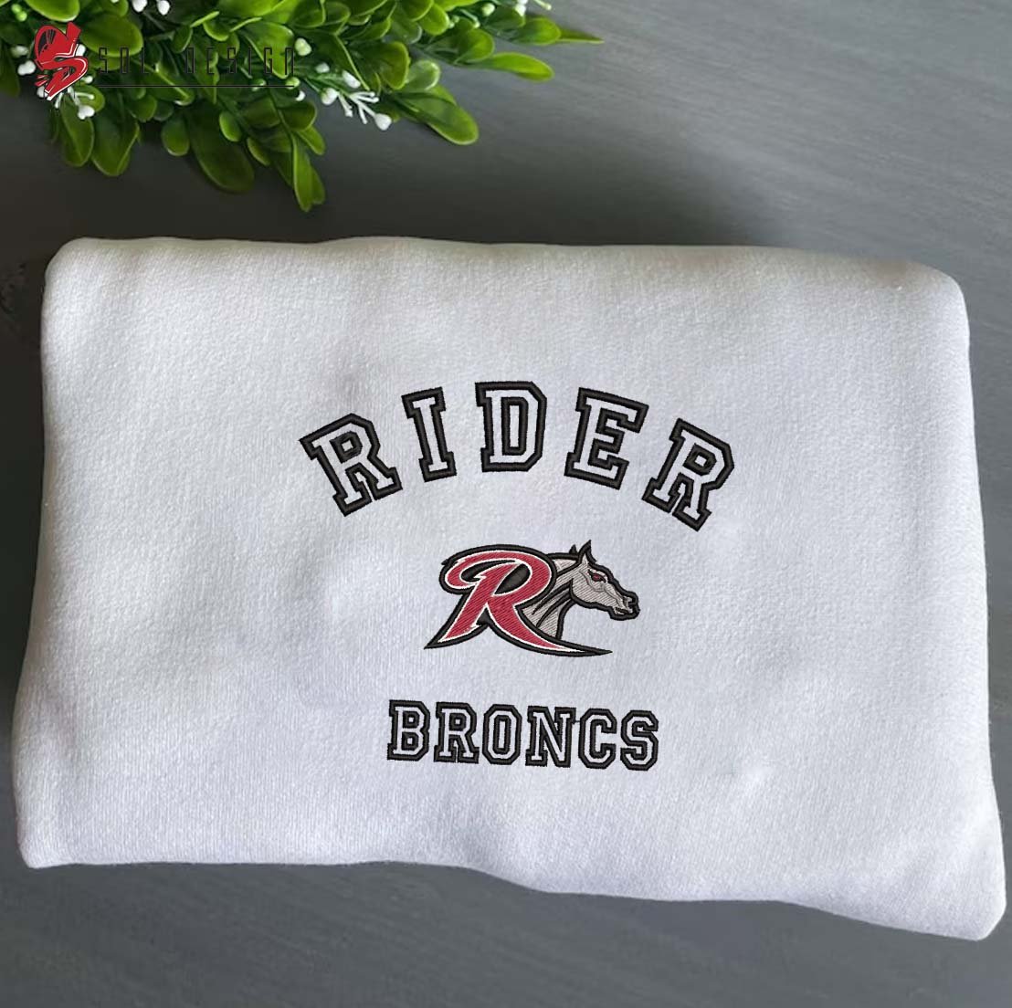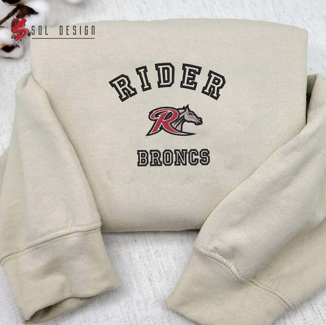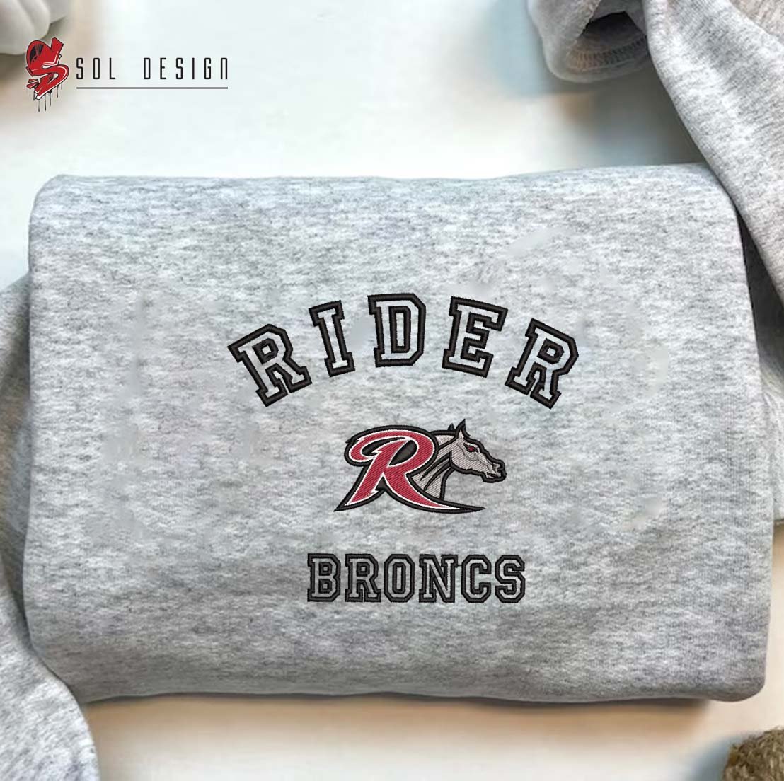 Rider Broncs NCAA College Football Team Embroidered Crewneck, Broncs College Football Embroidered Sweatshirt, NCAA Rider Broncs Team Sweatshirt, Game Day Embroidered Hoodie, T-shirt