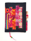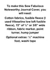 This journal cover has pockets inside to hold a ruler or sticky notes and it is held closed by a holder for your pen. A detailed measuring guide is included.
