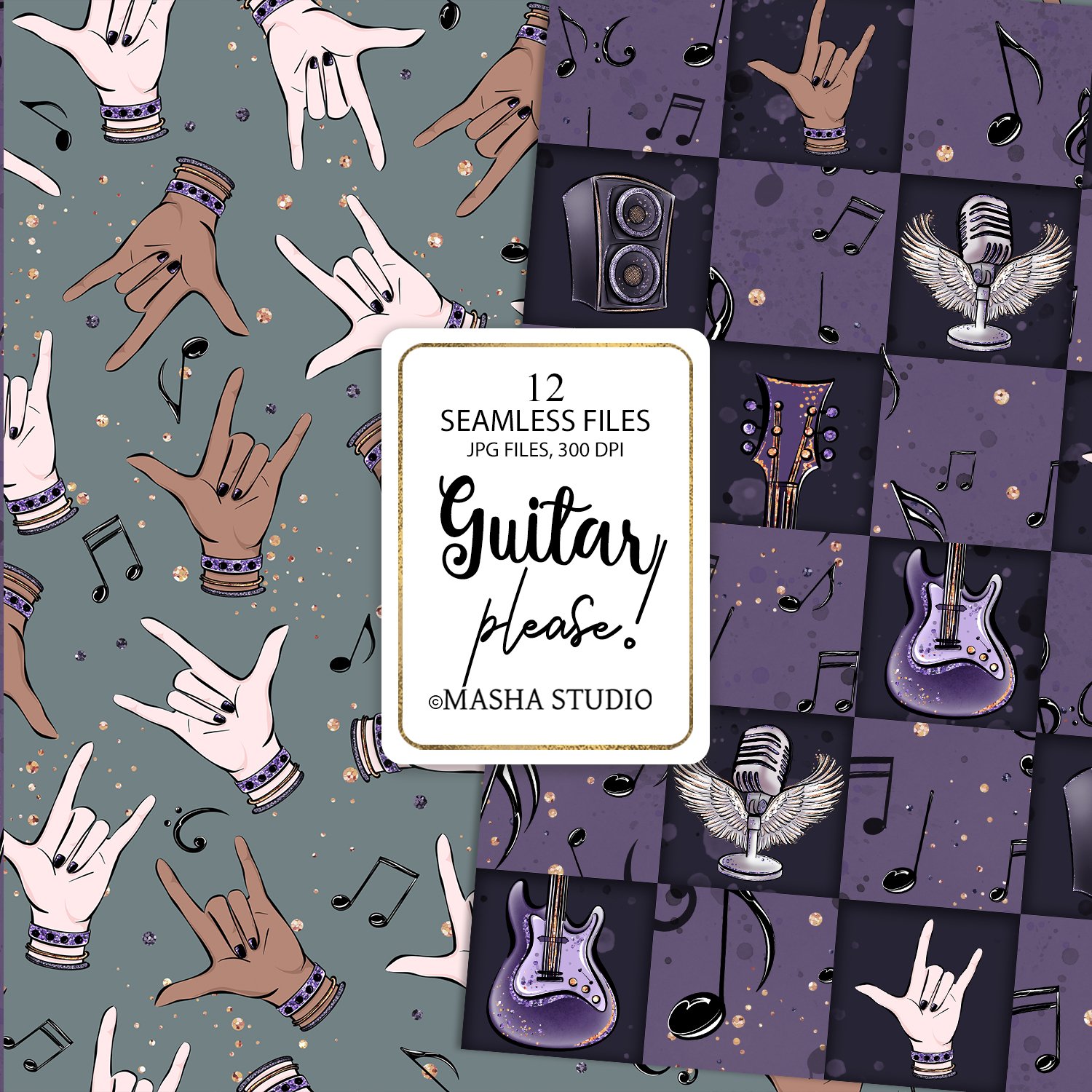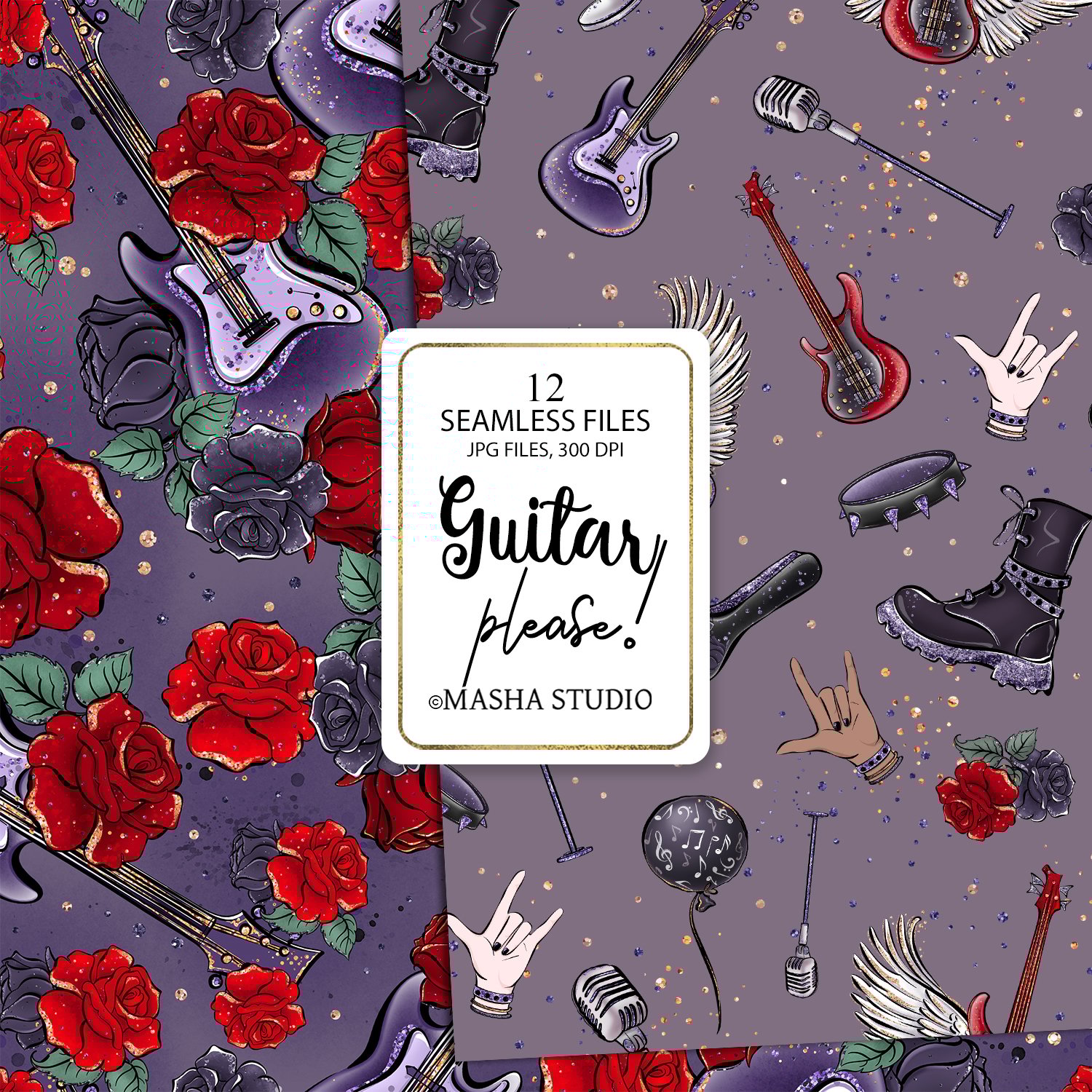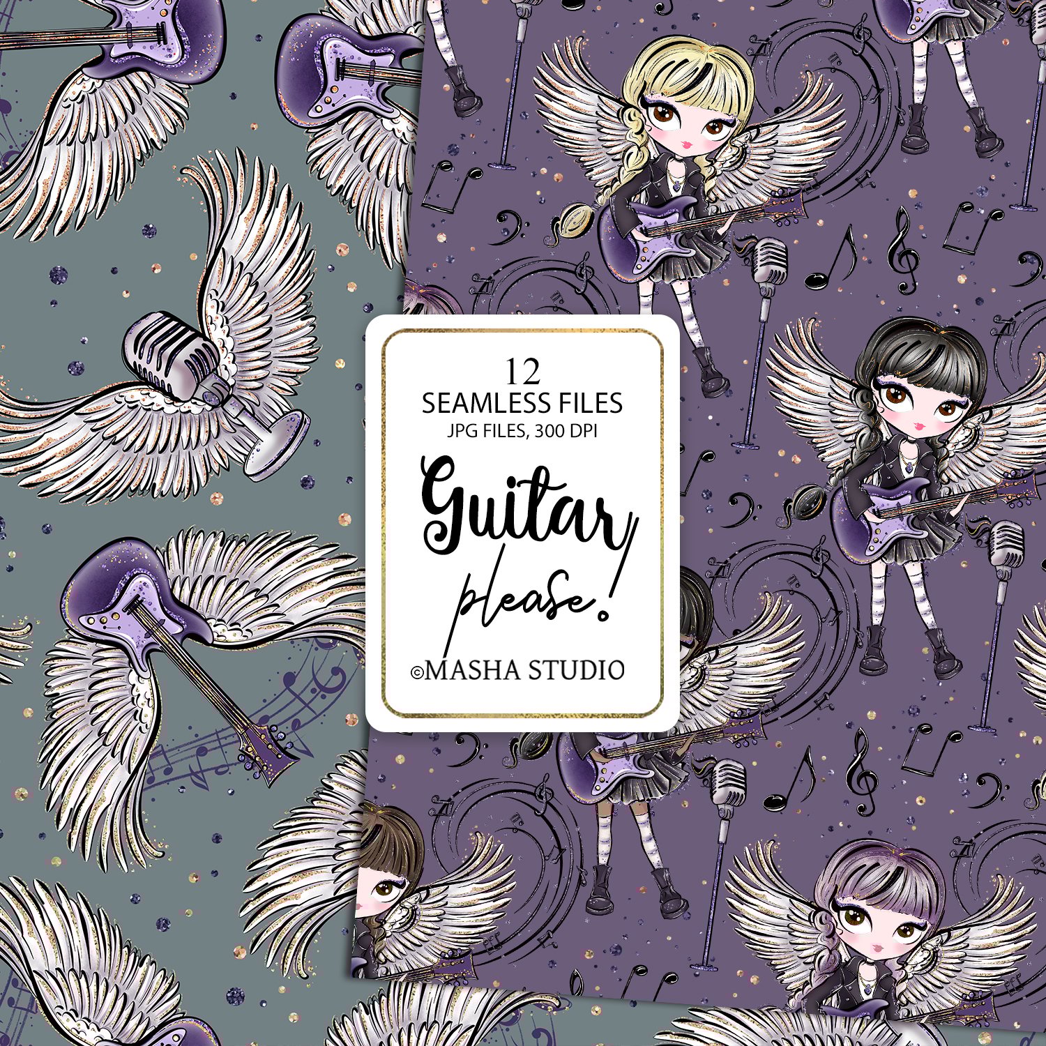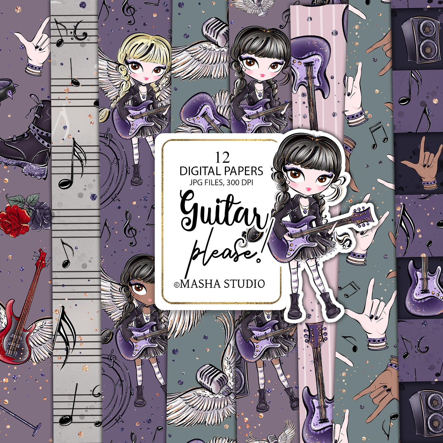 Guitar Girl Seamless Digital Papers