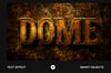 Heavy, metallic aesthetic that resembles weathered gold or aged brass. Each letter has a strong 3D embossed appearance, with beveled edges that catch light and create a sense of weight and solidity.