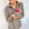 Dieser Pullover ist dabei ganz einfach zu stricken, nahtlos von oben nach unten, mit schönen Details am Kragen und den extralangen Ärmel-Bündchen.