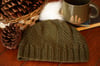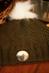 The hat is worked in the round from the brim up. You have the choice to add a spot for a special button on the brim or knit it simply in k2p2 ribbing. Pattern includes options to work either from a chart or written directions.