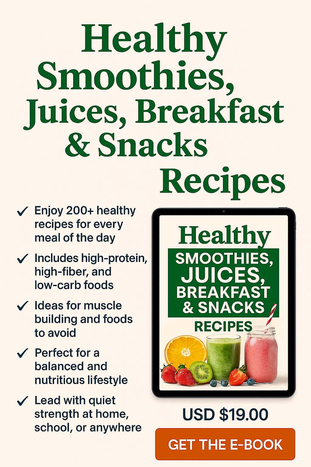 This eBook is packed with quick, easy, and nutritious recipes for smoothies, juices, breakfasts, and snacks—plus curated lists of: