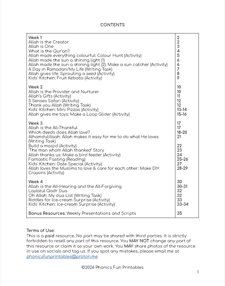 Want to try out a few activities before buying the full activity book? Get the "Allah is the only Creator" section separately first in shaa Allah.