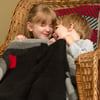 Inspired by the log cabin quilt pattern, Holli created a modular knit blanket that uses a traditional structure with a contemporary colour choice. We love the effect of the graphic greys, charcoal and black, with that pop of red to represent the hearth. The blanket is made all the cozier with a slight fulling in the finishing. This blanket has three size options: Stroller (Lap, Throw).