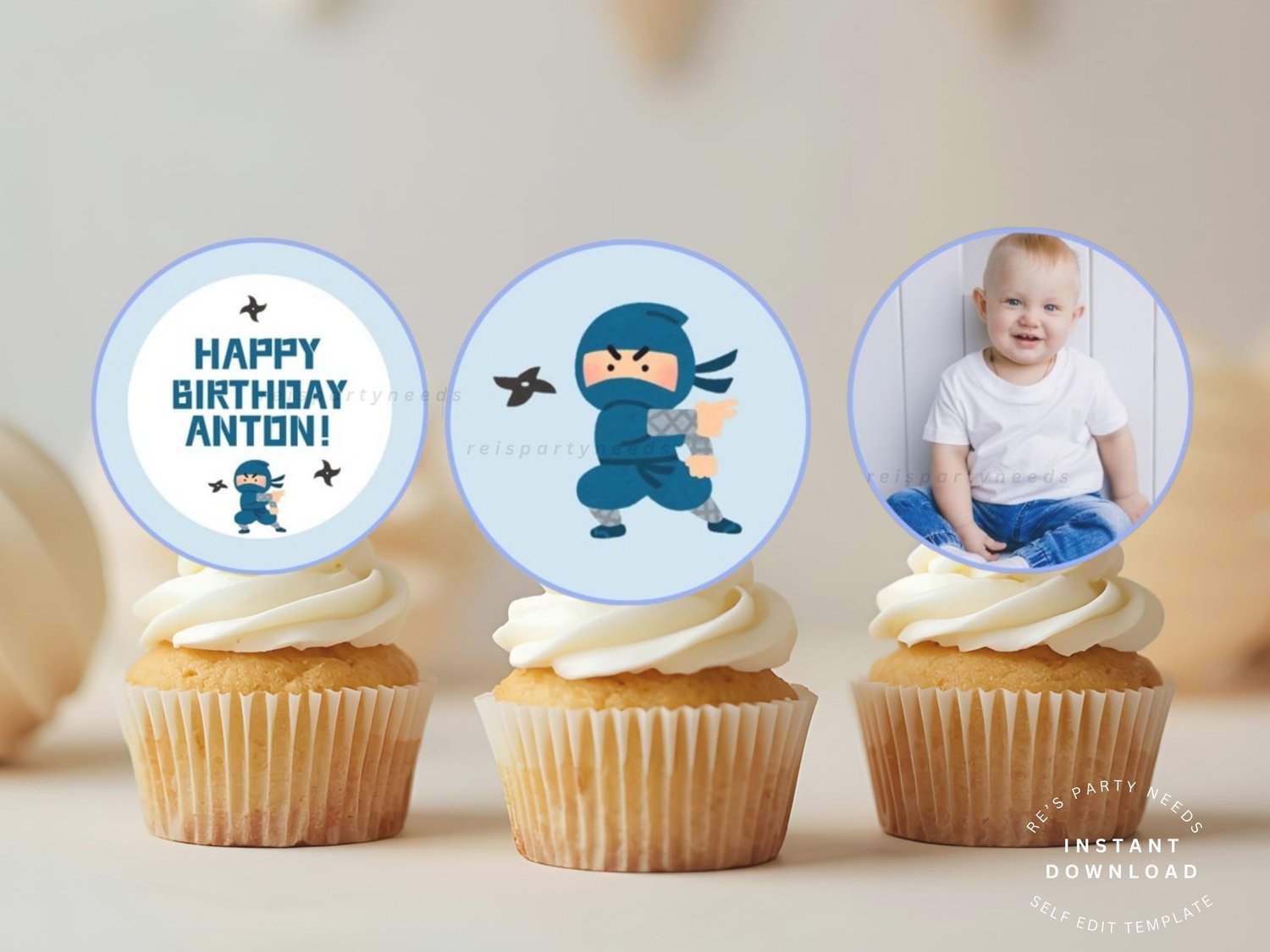 Printable Ninja Birthday Cupcake Topper, Martial Arts Stickers, Favor Tag Ninja Party Warrior, Karate Birthday Decor Editable Download