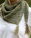 Vielo Shawl features easy lace stitch pattern. The pattern flows in a repeatable way, so it can be easily memorized. The shawl is knitted from side to side. Lovely shawl knits up quickly with one 50 g skein of light fingering weight yarn.