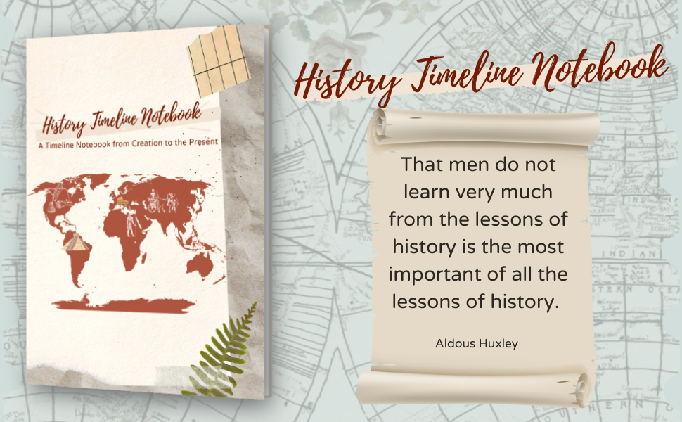Get the greatest flexibility to track events as you study them with this timeline notebook: from creation to present day. It can accompany your history curriculum for homeschool, Charlotte Mason method, or however you want to incorporate it into your homeschool history curriculum. The history pages are set up with a timeline so you can write, draw, use stickers, or get as creative as you want with documenting historical events.