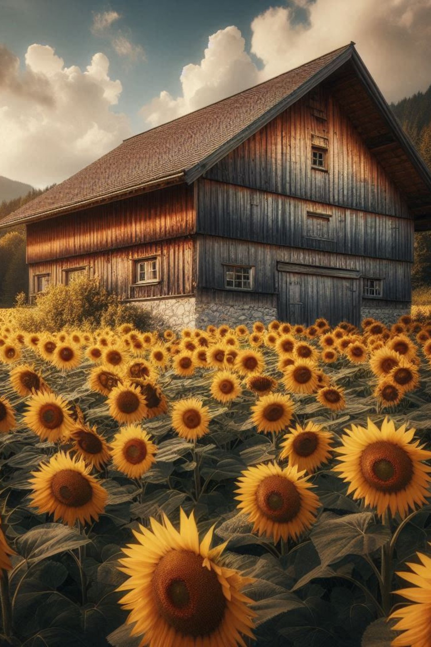 Primitive Barn with Sunflowers #3 you will get 3 digital downloads with your purchase. Including sizes and instructions to print the size you want up to a 24" x 36" size.