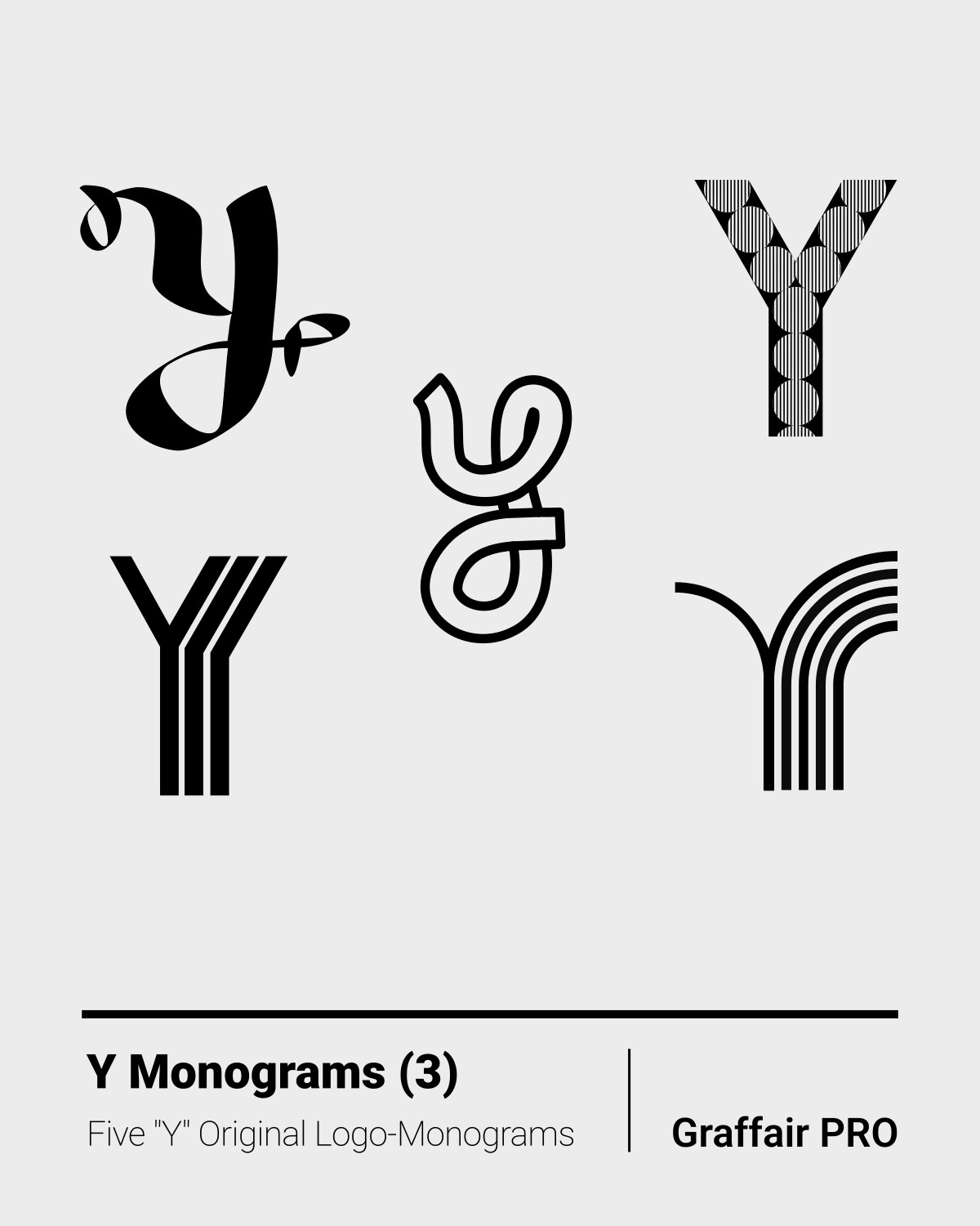 Y Monograms (3): The 3rd set of five original "Y" logo-monograms, included in the "1050 SVG Monograms" super bundle, amongst others, which also features an Index catalog.