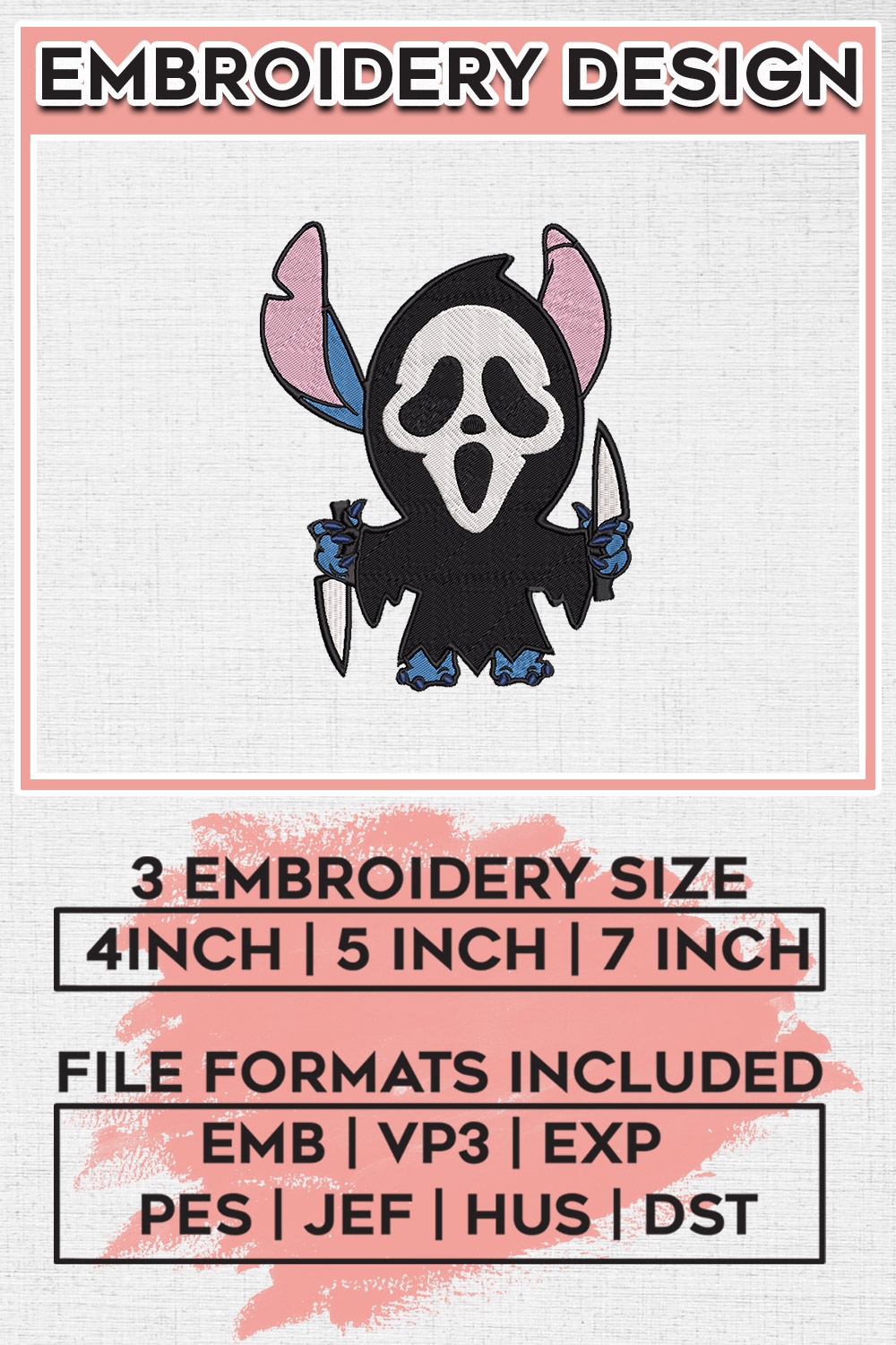 Ghostface x Stitch Embroidery Designs, Halloween Embroidery Files, Horror Movie Embroidery, Horror Character Machine Embroidery Design, Digital Download