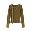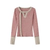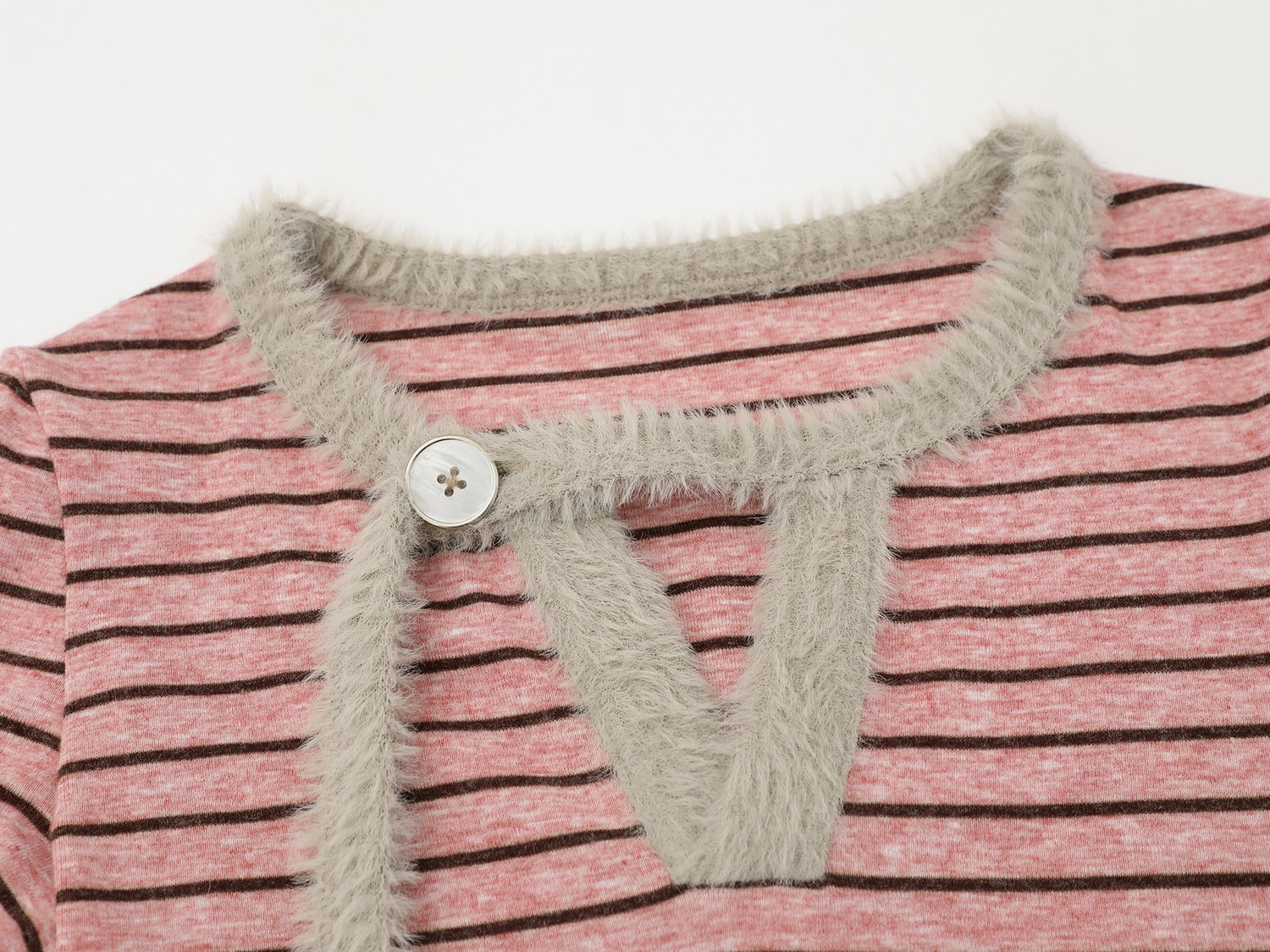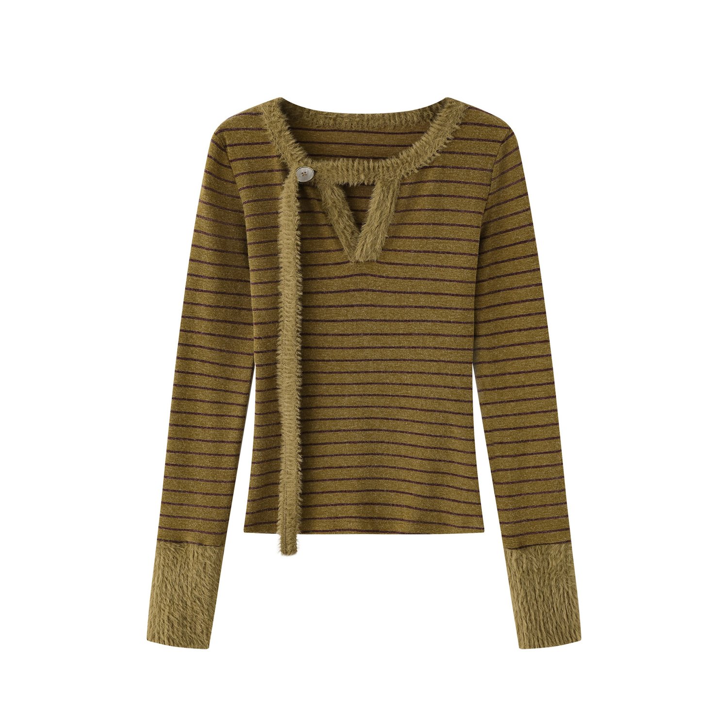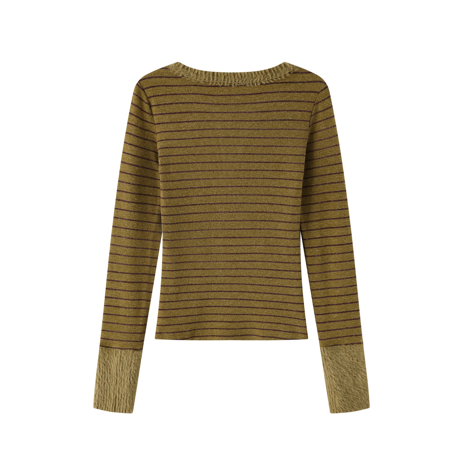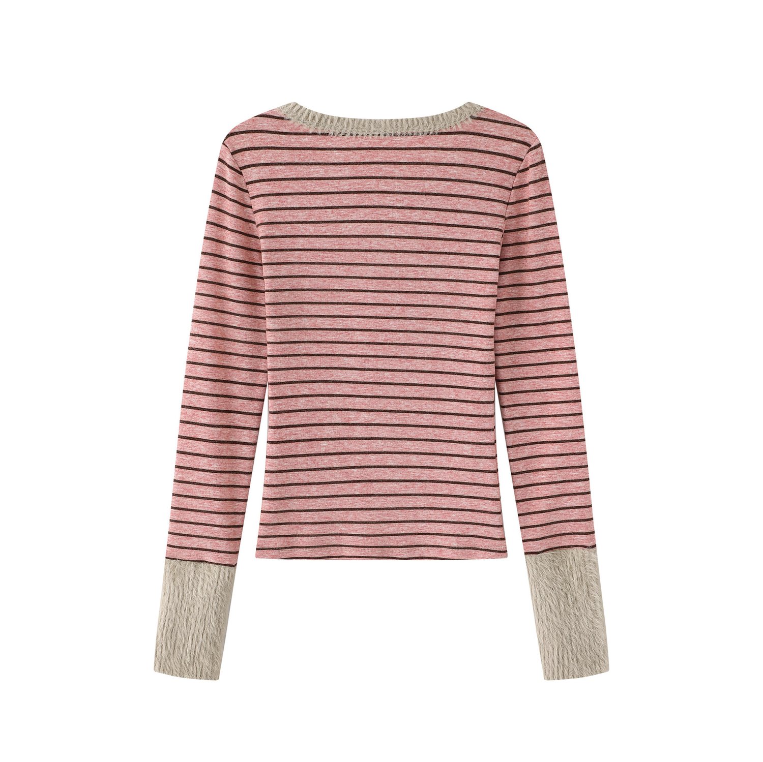 Designer horizontal stripes plush trim longsleeve T-shirt