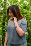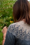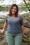 The Bonfire Tee is knit seamlessly from the top down. The neckline is cast on and short rows are worked to raise the back of the neck for a comfortable fit. The colorwork yoke is knit, then the body and sleeves are separated and worked from the top down.