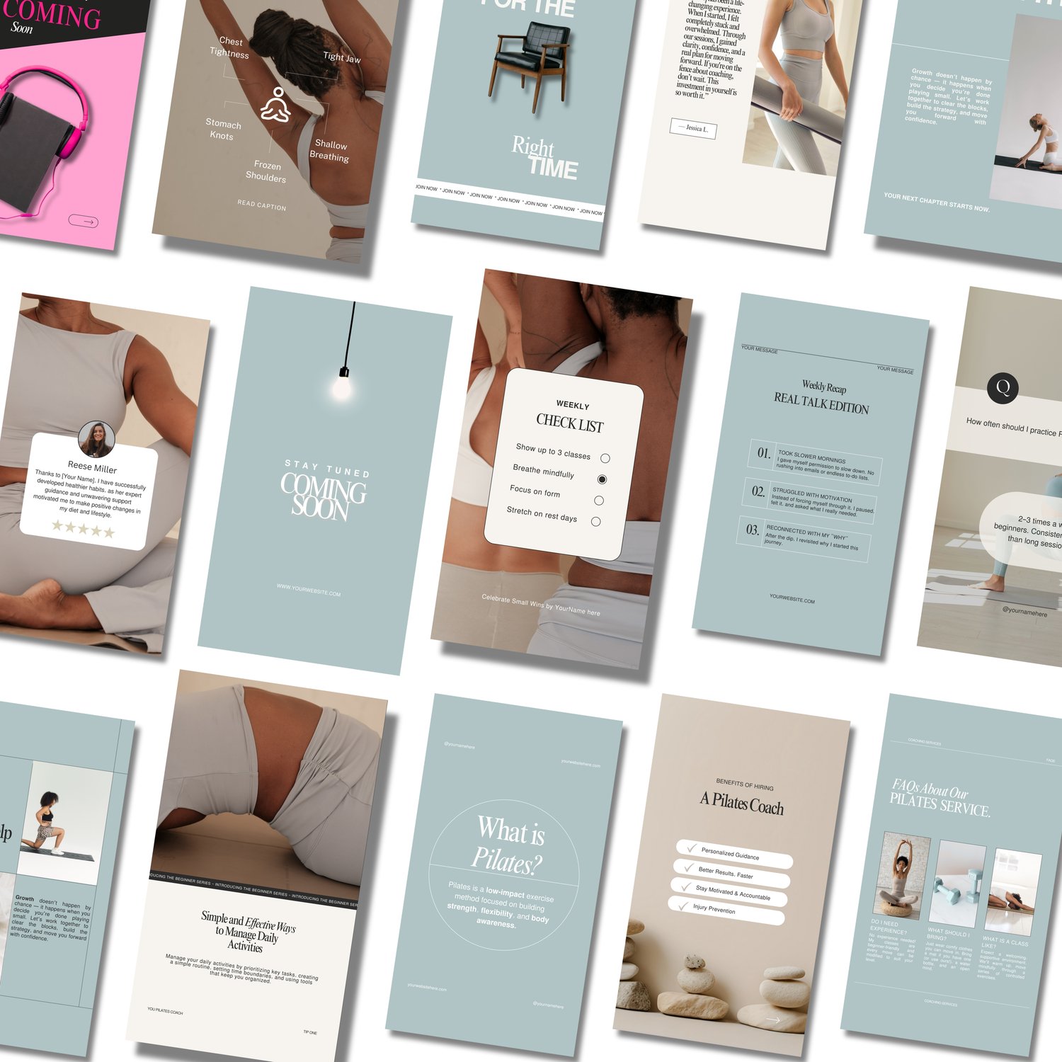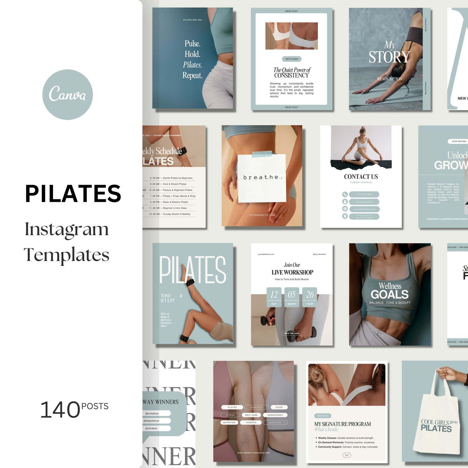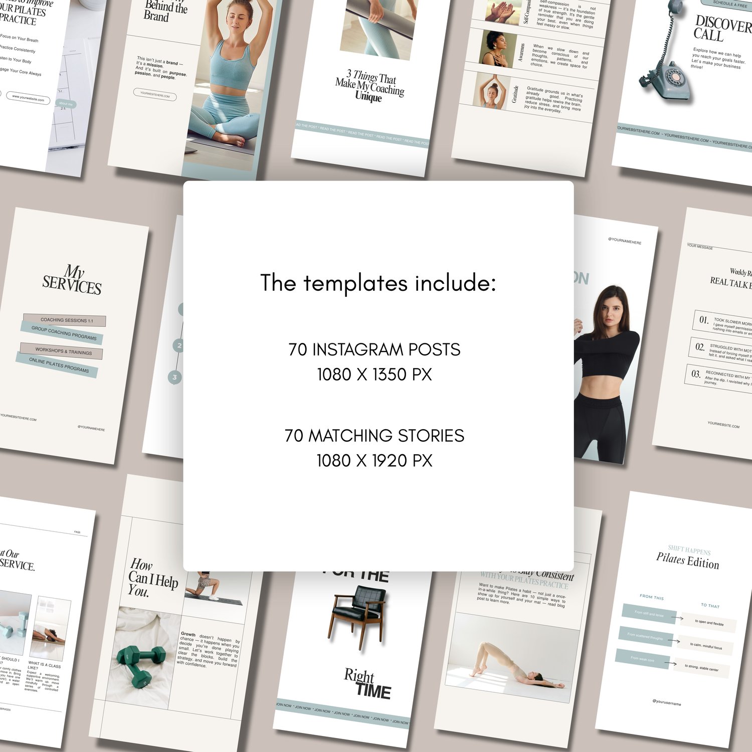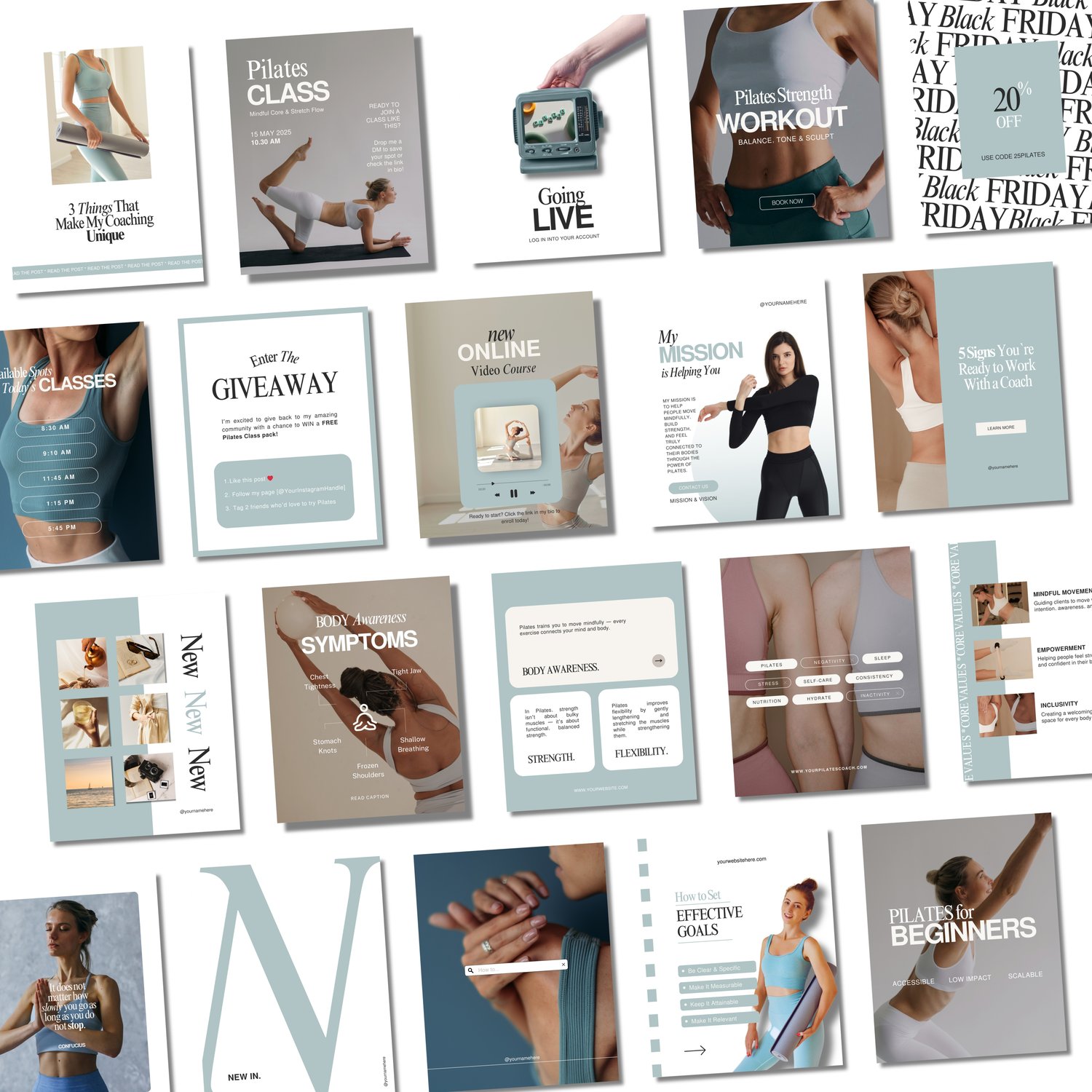 Pilates Studio Instagram Templates | Pilates Instructors Instagram | Pilates Instructor Social Media Posts | Pilates Content Canva Templates | Pilates Class Post Ideas | Pilates Business Instagram Content | Fitness and Wellness