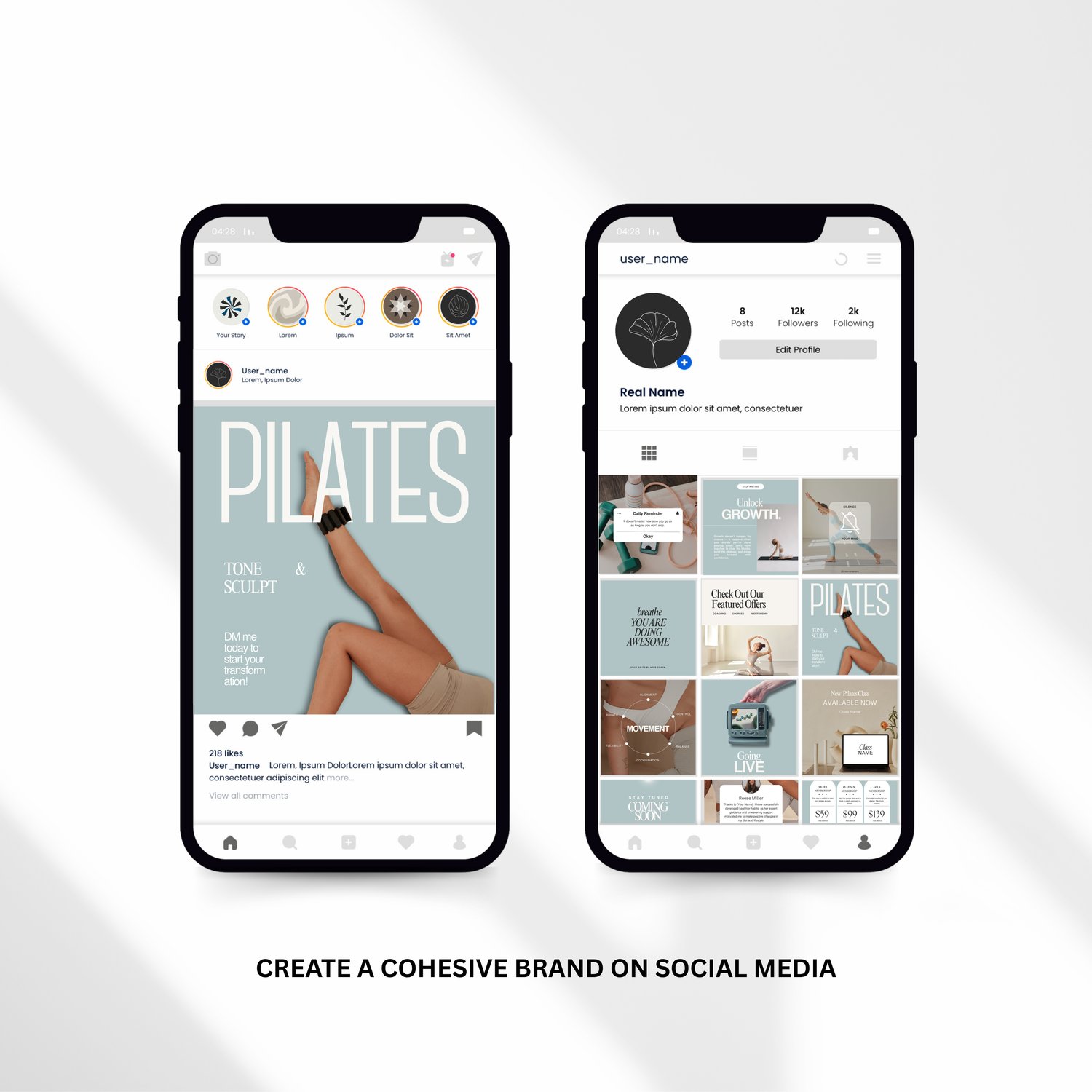 Pilates Social Media Templates Pilates Studio Instagram Post and Stories