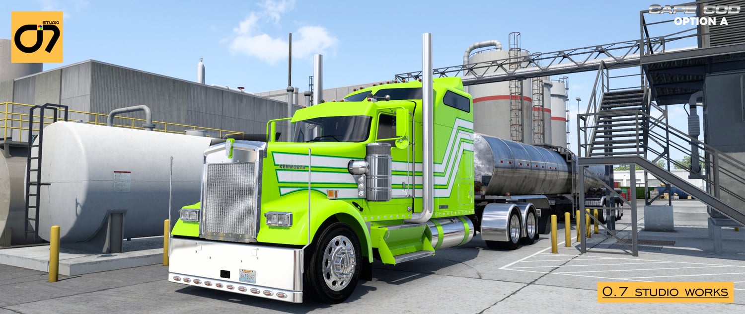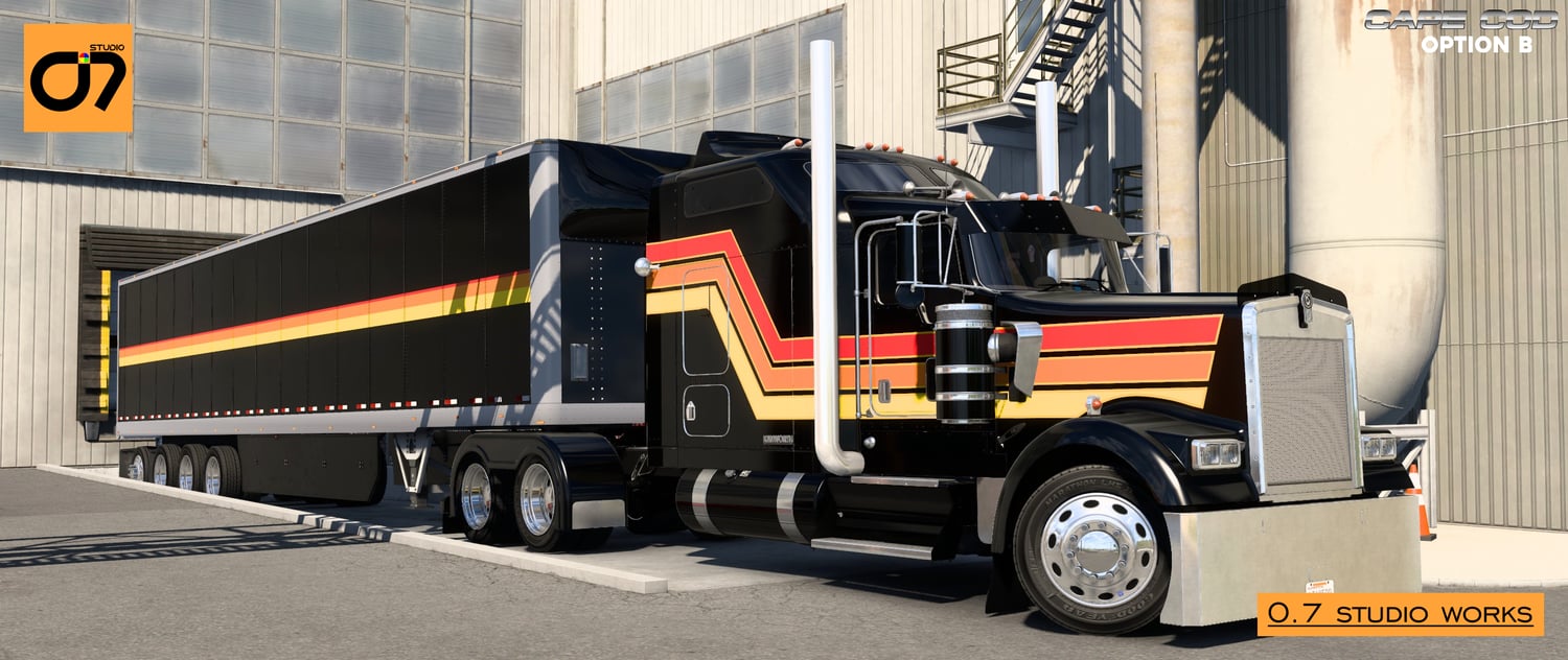 Transport yourself to the picturesque beauty of Cape Cod with Option A. This variant, inspired by the original Kenworth paint scheme from the 80s W900B, captures the timeless charm of trucking's golden era. Each detail is meticulously crafted to preserve the classic beauty while making your journey a nostalgic adventure.