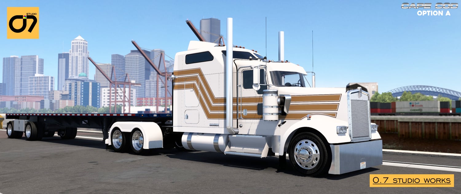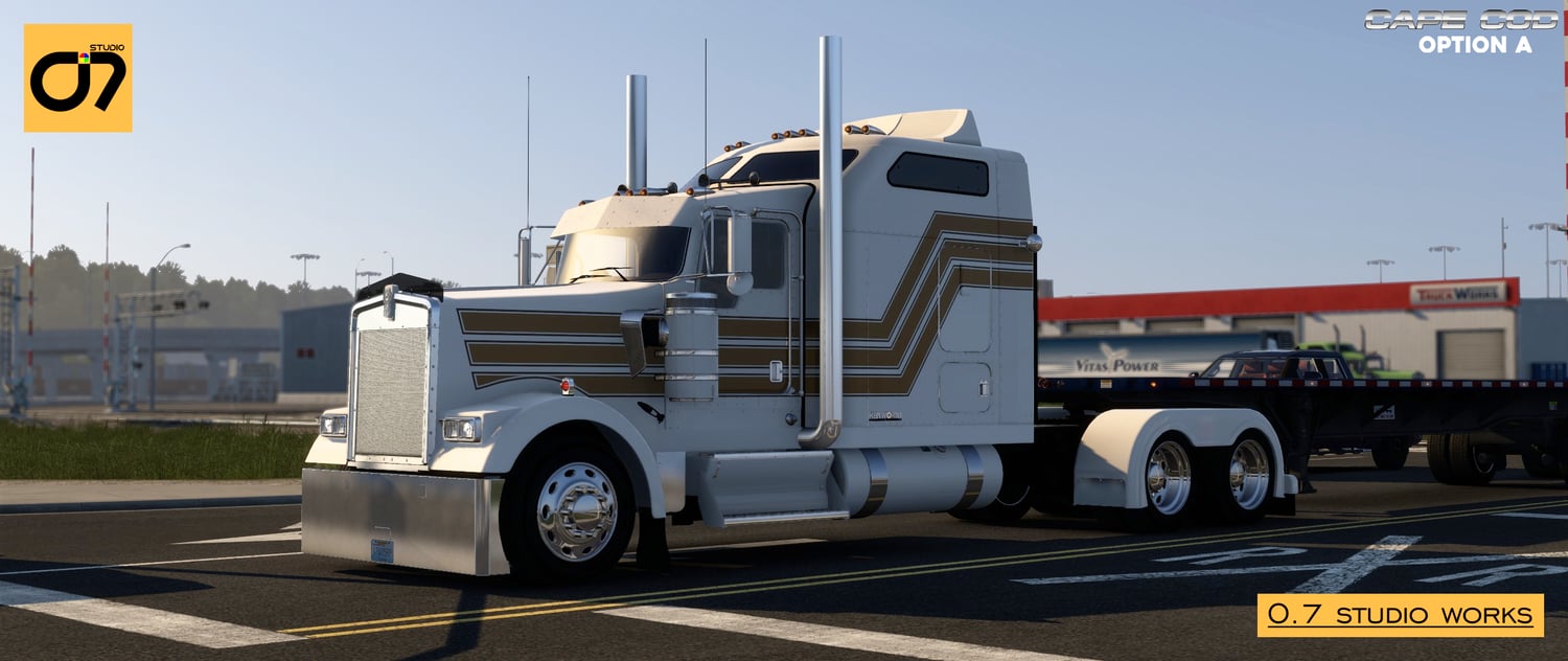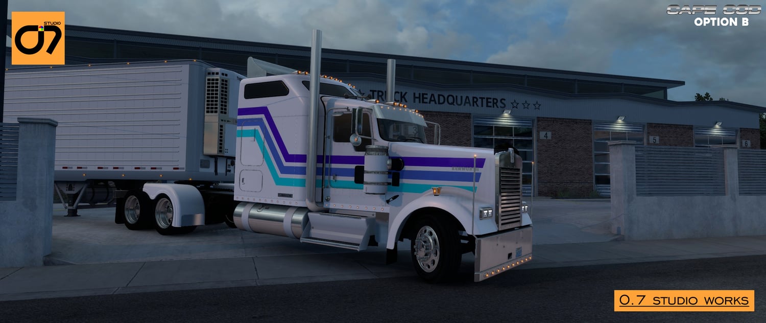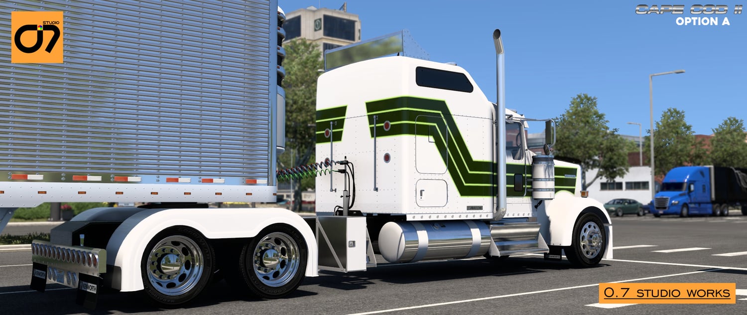 Immerse yourself in the sophistication of Cape Cod II's Option A, featuring a standard color setup that preserves the classic beauty inspired by the original Cape Cod paint scheme. Every detail is meticulously designed to capture the essence of Cape Cod's coastal allure, providing a unique and refined look for your Kenworth W900L.