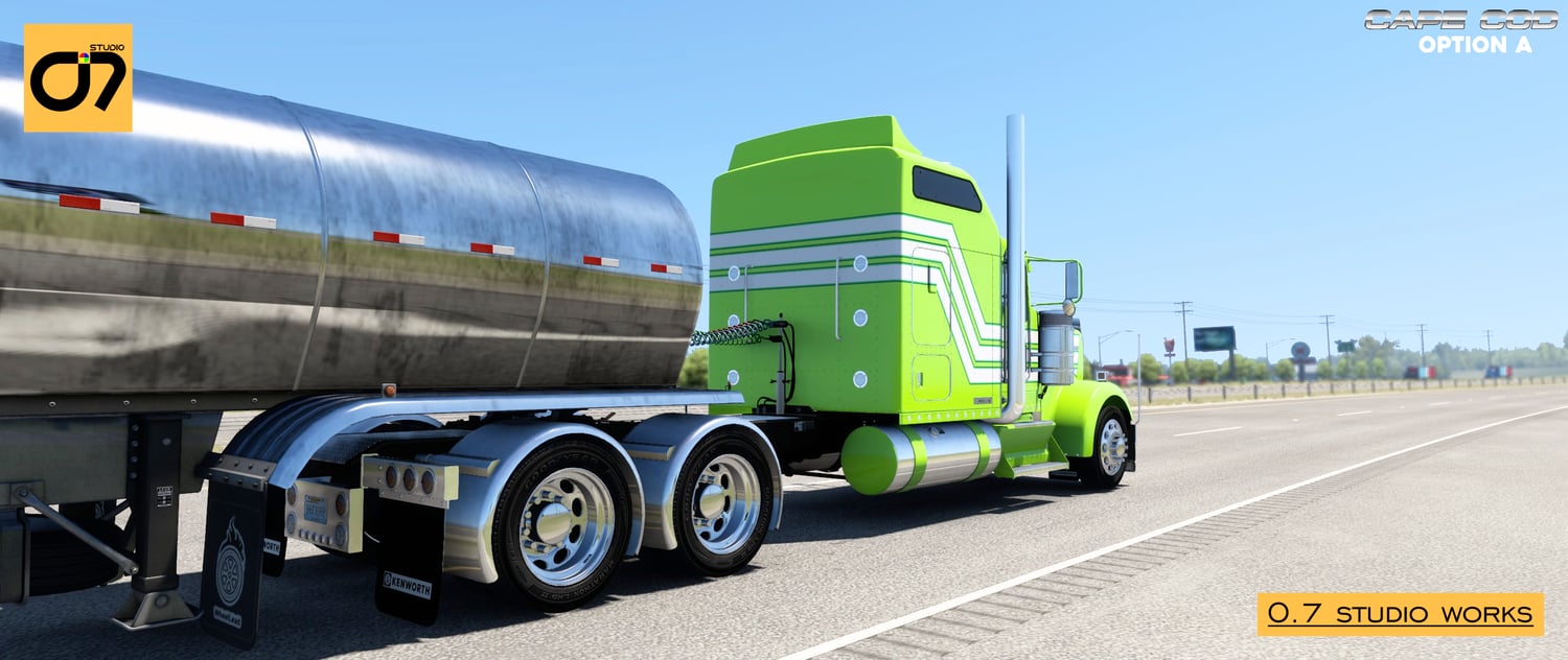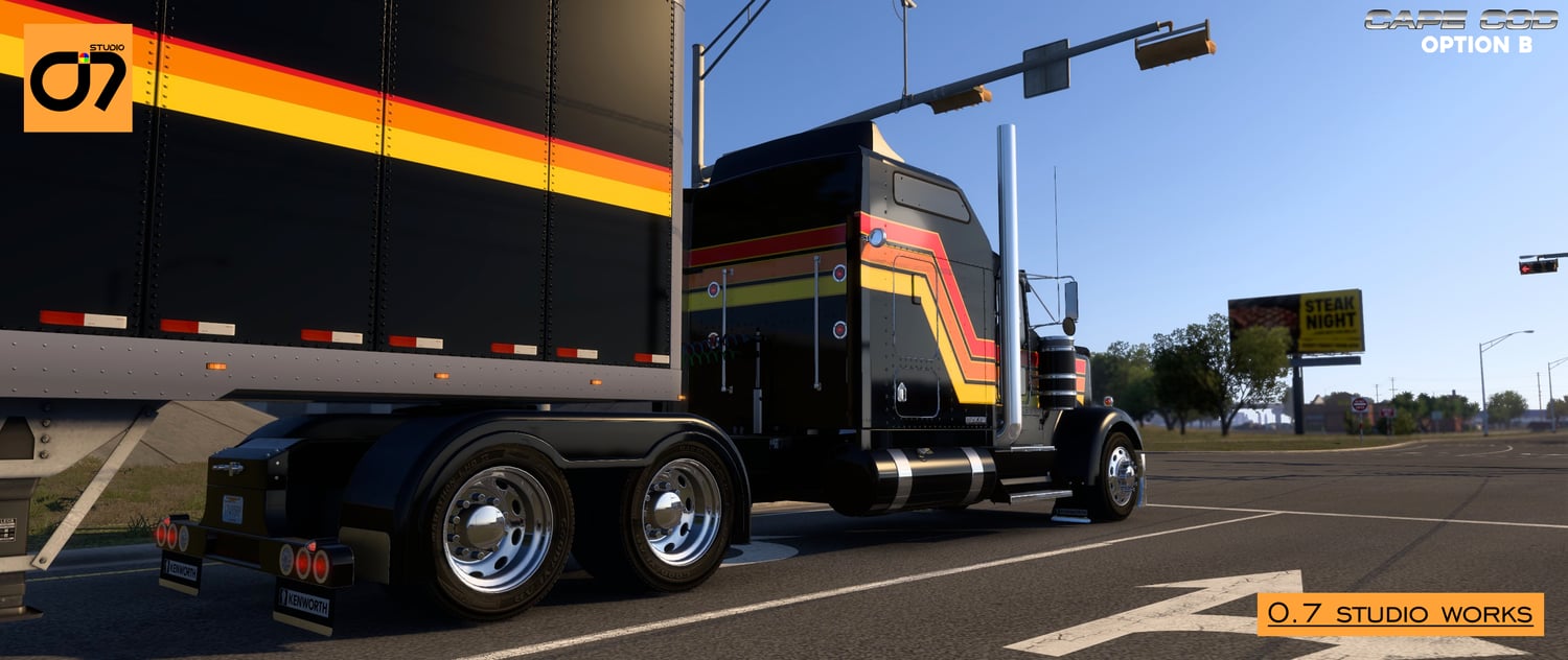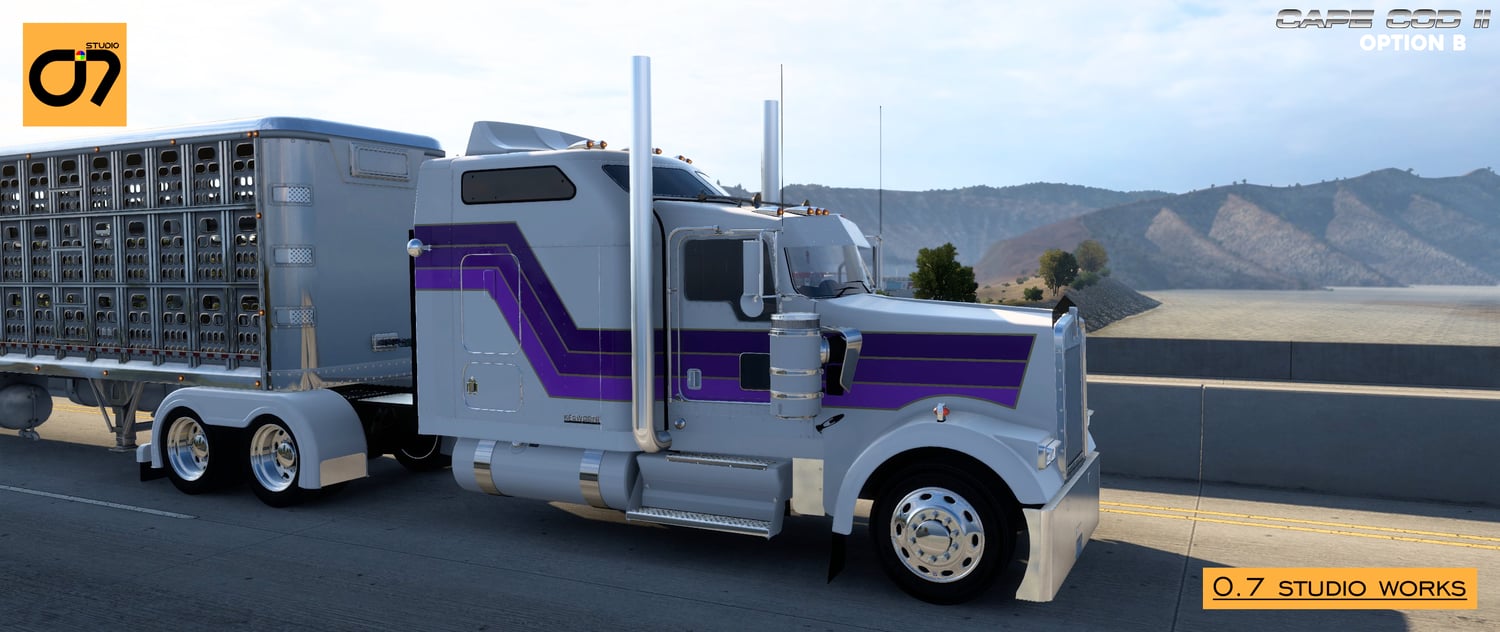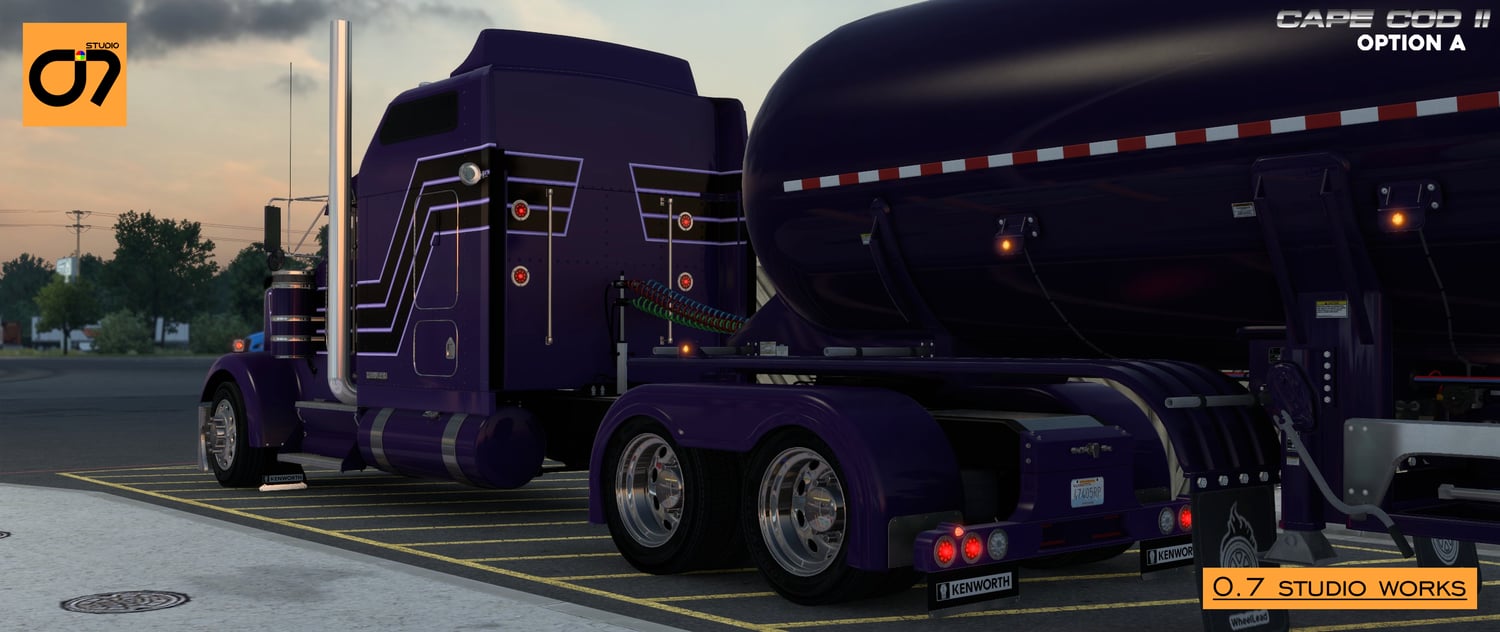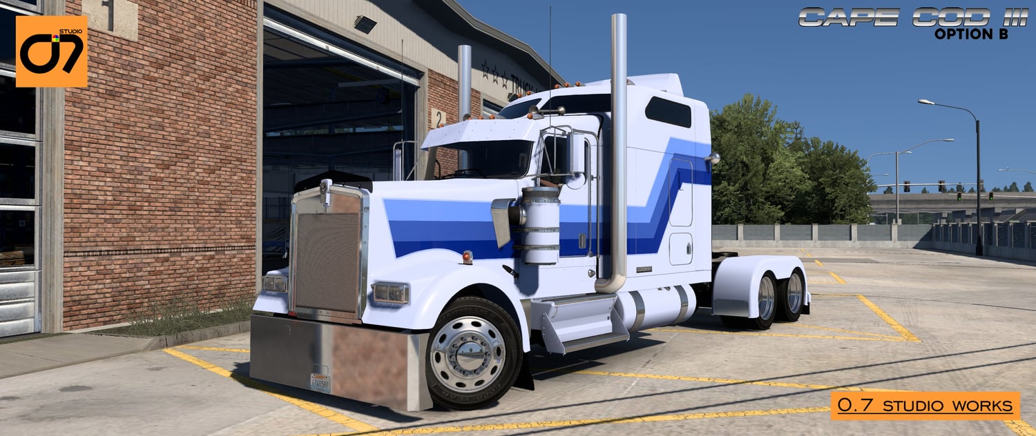 Immerse yourself in the sophistication of Cape Cod II's Option A, featuring a standard color setup that preserves the classic beauty inspired by the original Cape Cod paint scheme. Every detail is meticulously designed to capture the essence of Cape Cod's coastal allure, providing a unique and refined look for your Kenworth W900L.