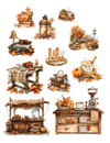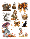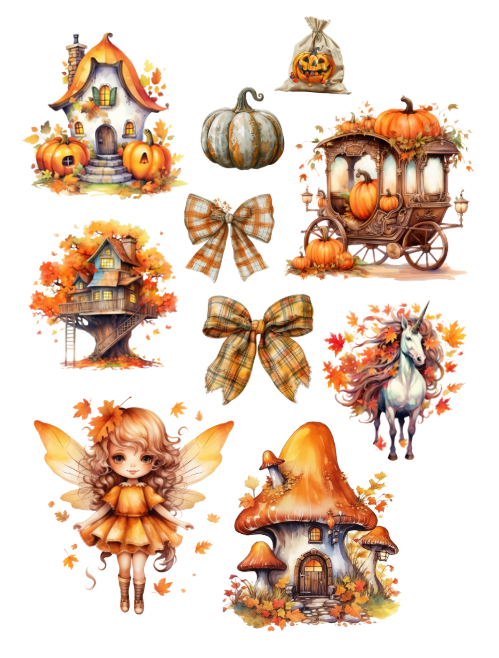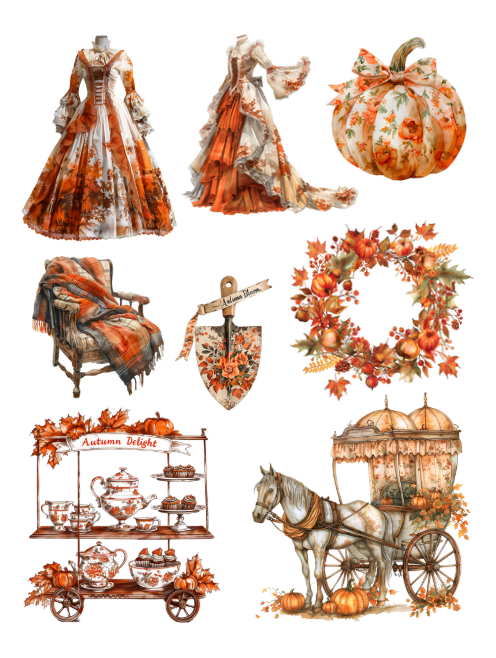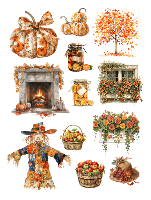 This beautiful cut and collage fall seasonal ephemera book features absolutely gorgeous elements including fall leaves, houses, wreaths, acorns, beautiful women, hay bales, wheels, pumpkins, autumnal scenes, paths, landscape scenery, orange and brown elements, birds, bows, pies, animals, fairies, mushrooms, pinecones, furniture, carriage, dresses, coffee, mugs, birdbaths, bookmarks, harvest signs, harvest themes, scarecrows, benches, candles, lanterns, outdoors concepts and much more. Decorate your planner with these lovely ephemera pieces, it's all the rage!