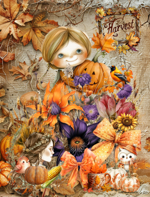This Cut and Collage Fall Seasonal Ephemera Book features: