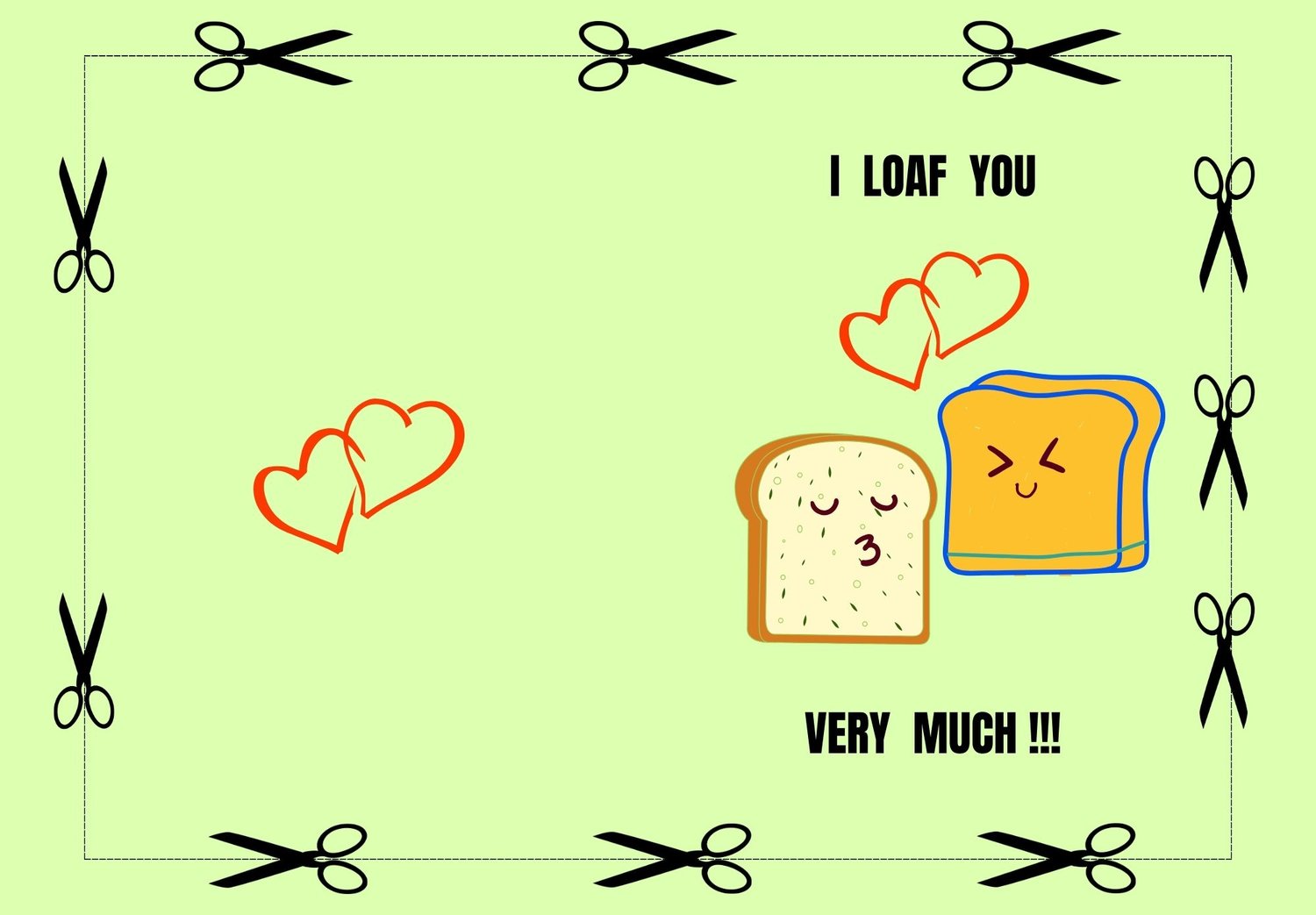 A CUTE & FUNKY - BREAD THEME BASED - GREETING CARD - FOR YOUR SPECIAL ONE - BOYFRIEND / GIRLFRIEND / LOVER / HUSBAND / WIFE - TWO LOVING BREAD