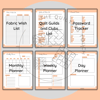 This quilt planner journal has sewing designs around the edges in pink. Plan your quilts with ease with this printable quilt planner. This 13-page PDF is packed with handy planning pages as well as Month, Week and Daily planning pages.