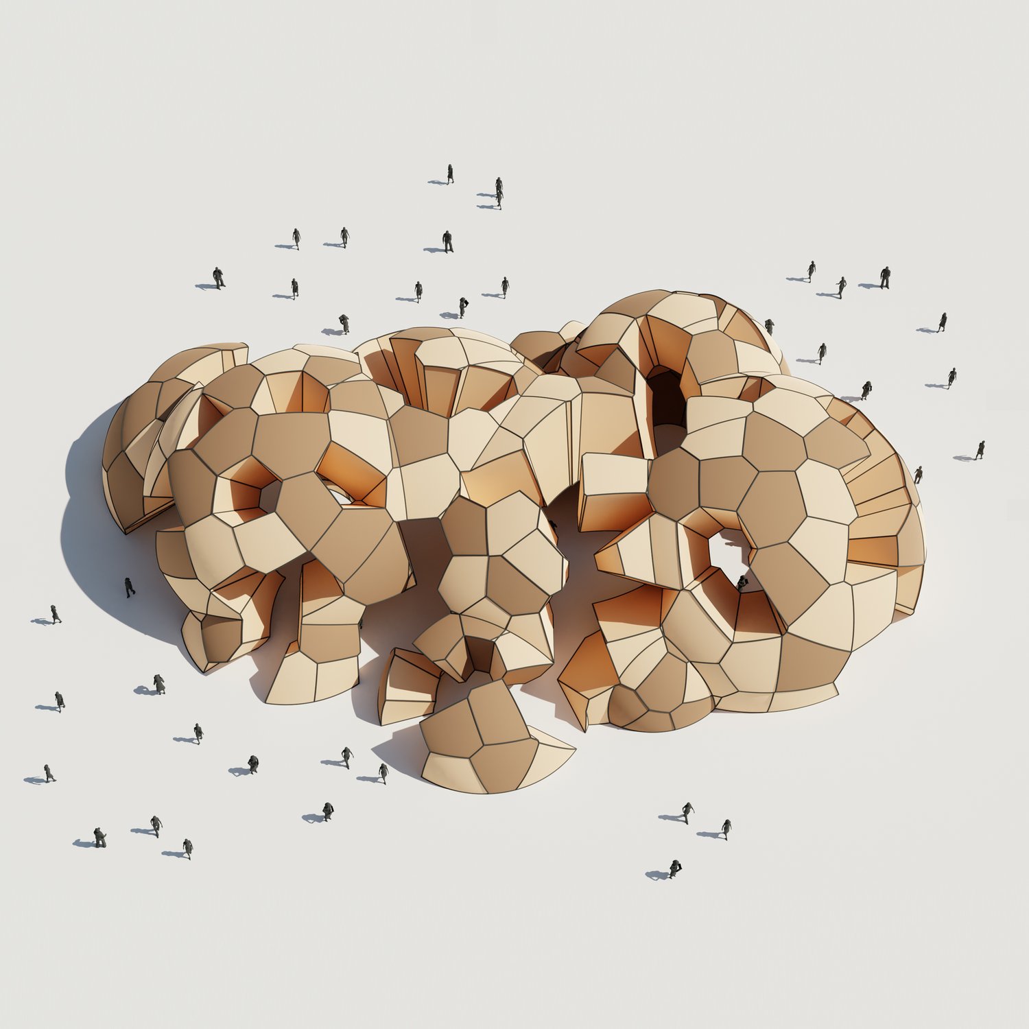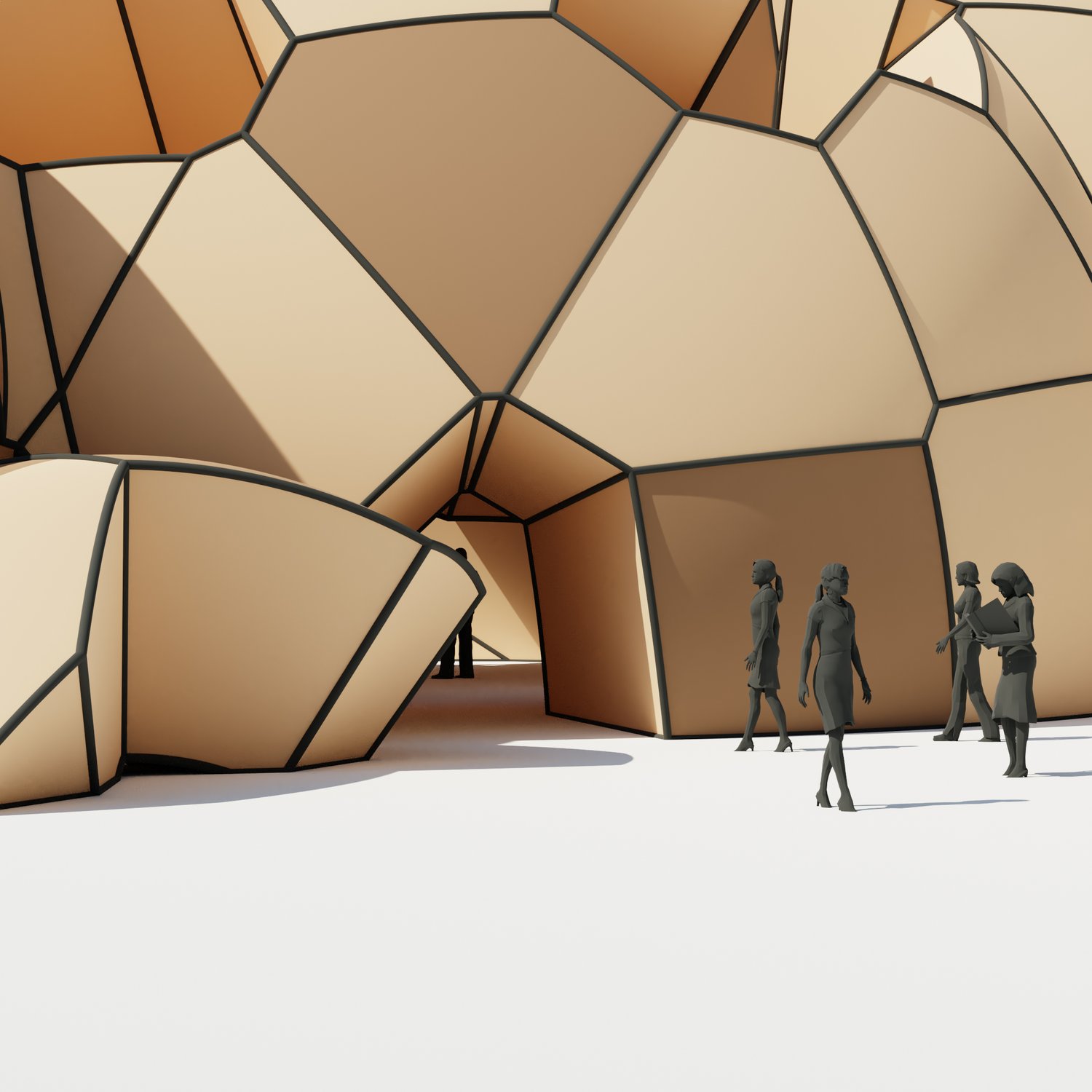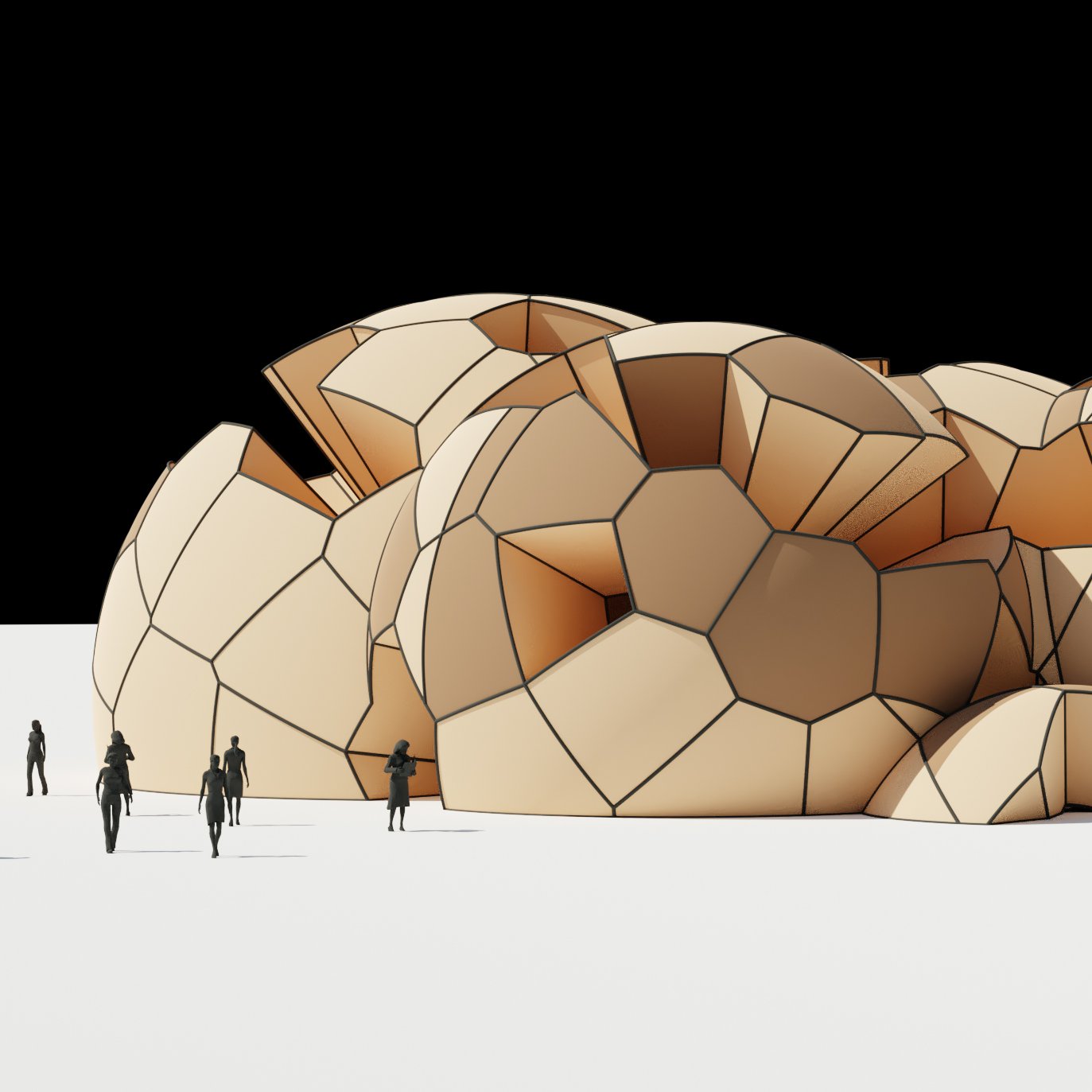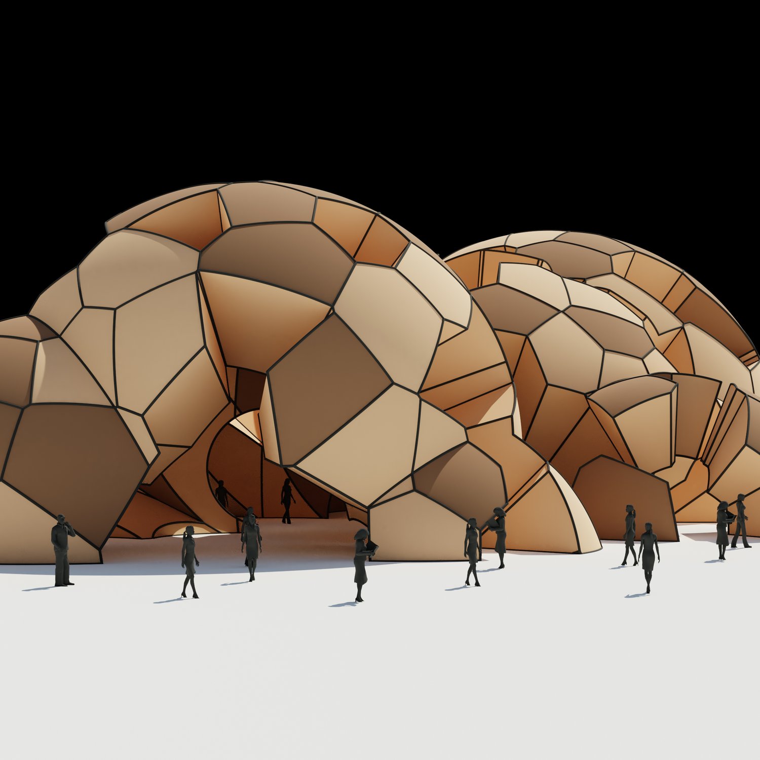 You can download the Rhino Grasshopper File of the Boolean Shpere and Voronoi Pavilion