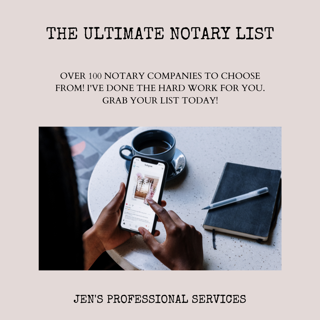 Hi, I'm Jennifer of Jen's Professional Services. I've been working on this list since I became a notary and am so excited to share it with you! I tried to make sure to do as much of the work for you as possible, so all you have to do is decide where you want to apply, and enter/send your information.